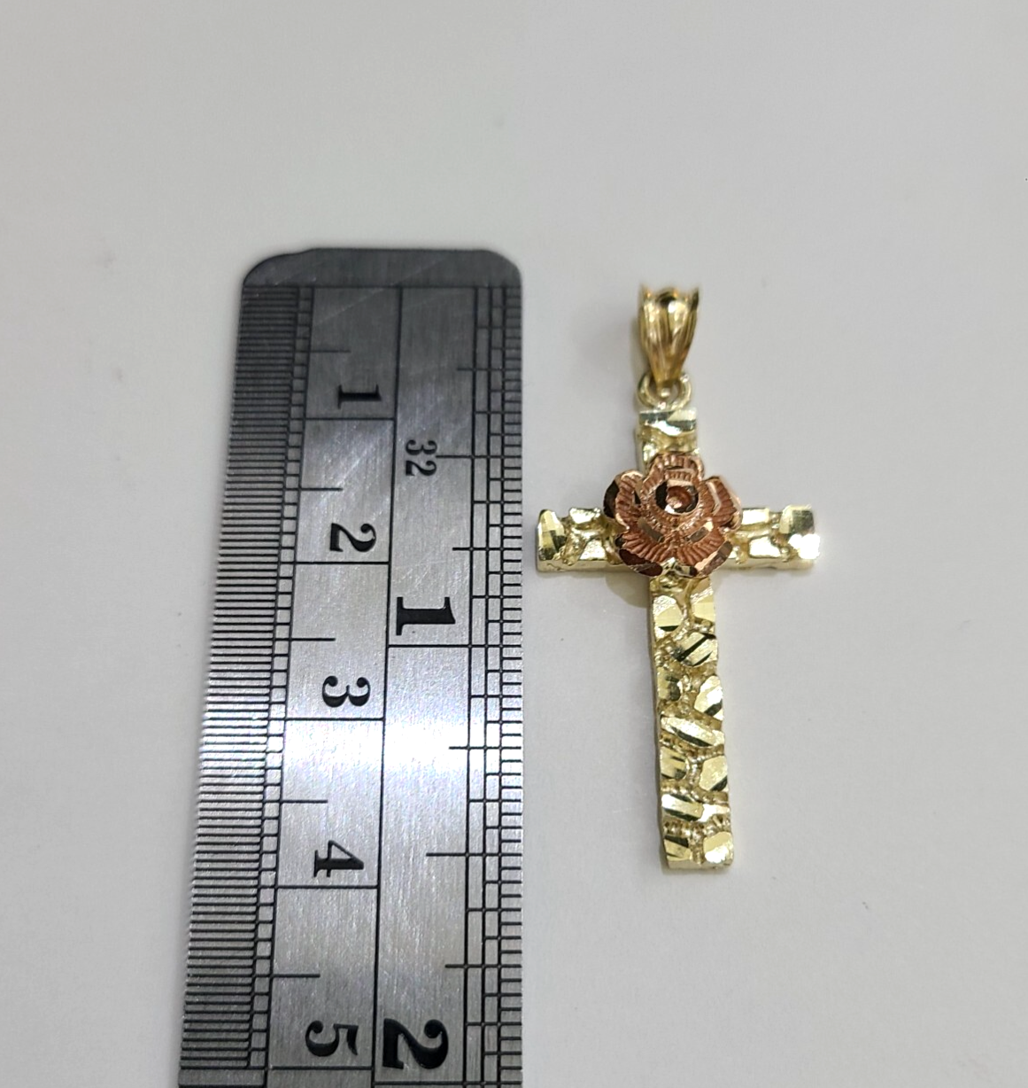 Genuine 10k Yellow Gold Rope Chain 3mm With Nugget Jesus Rose Cross Diamond cuts design. The Various length of the Chain are 18"-28". The pendants are unique in design and considered durable too. If you are not happy with the way it looks or feels, we do offer 30 - Days FREE Return shipping. Contact us for more information.