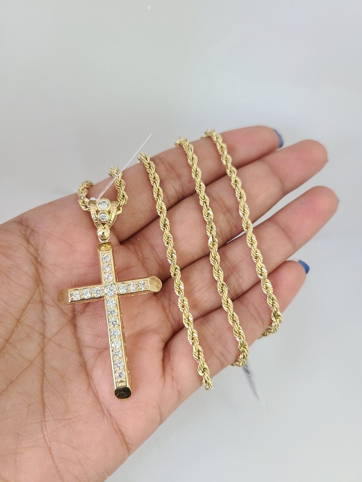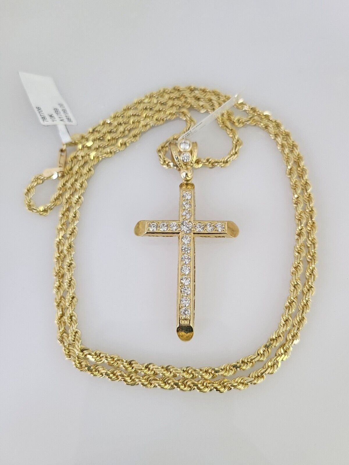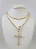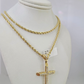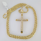 REAL 10k Rope Chain Jesus Cross Charm Pendant 3mm Necklace Jesus Cross Set 18"-26"