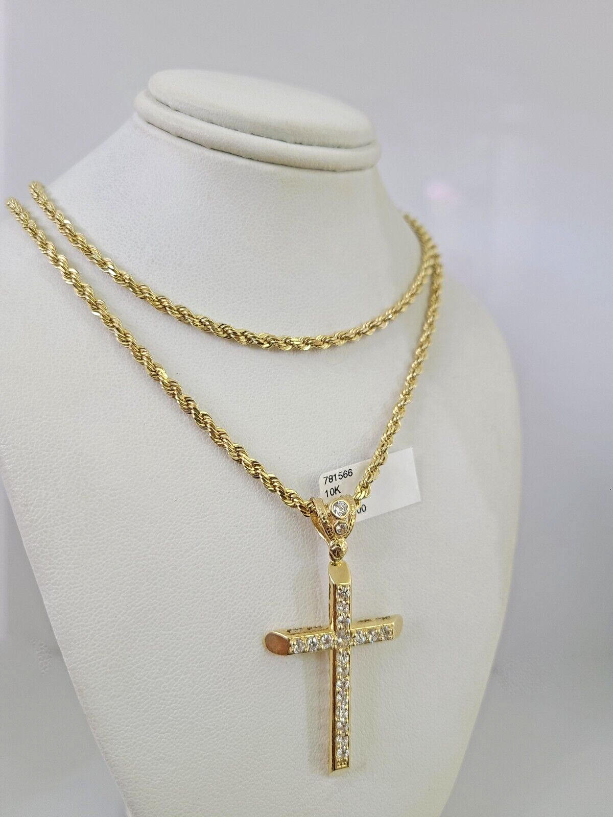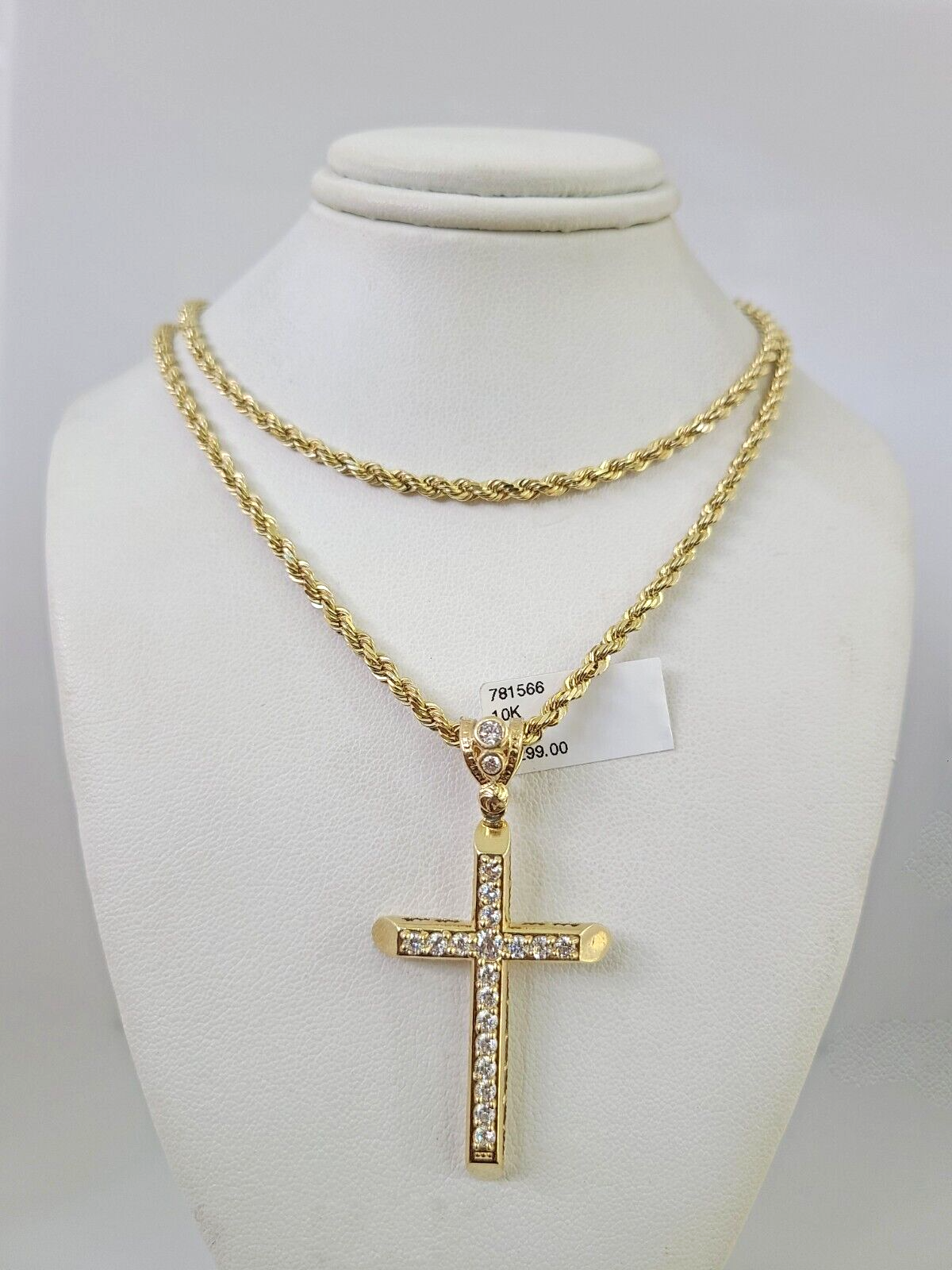 Genuine 10k Yellow Gold Rope Chain 3mm With Jesus Cross Diamond cuts design. The Various length of the Chain are 18"-26" with Jesus Cross. The pendants are unique in design and considered durable too. If you are not happy with the way it looks or feels, we do offer 30 - Days FREE Return shipping. Contact us for more information.