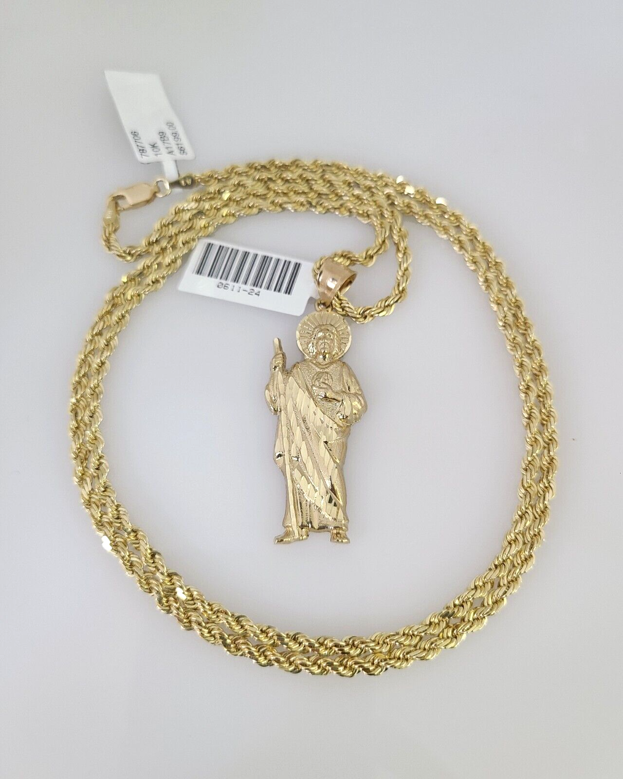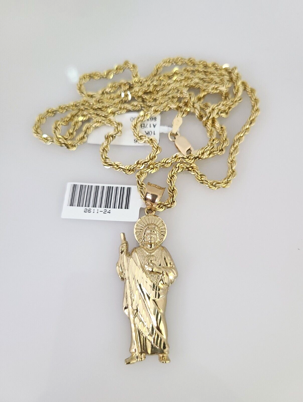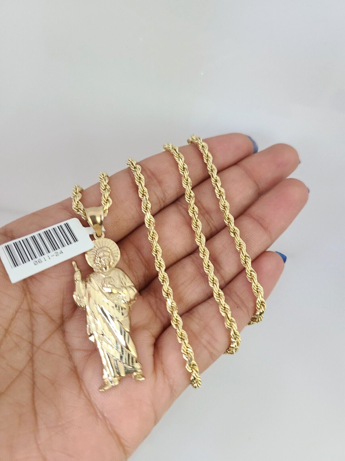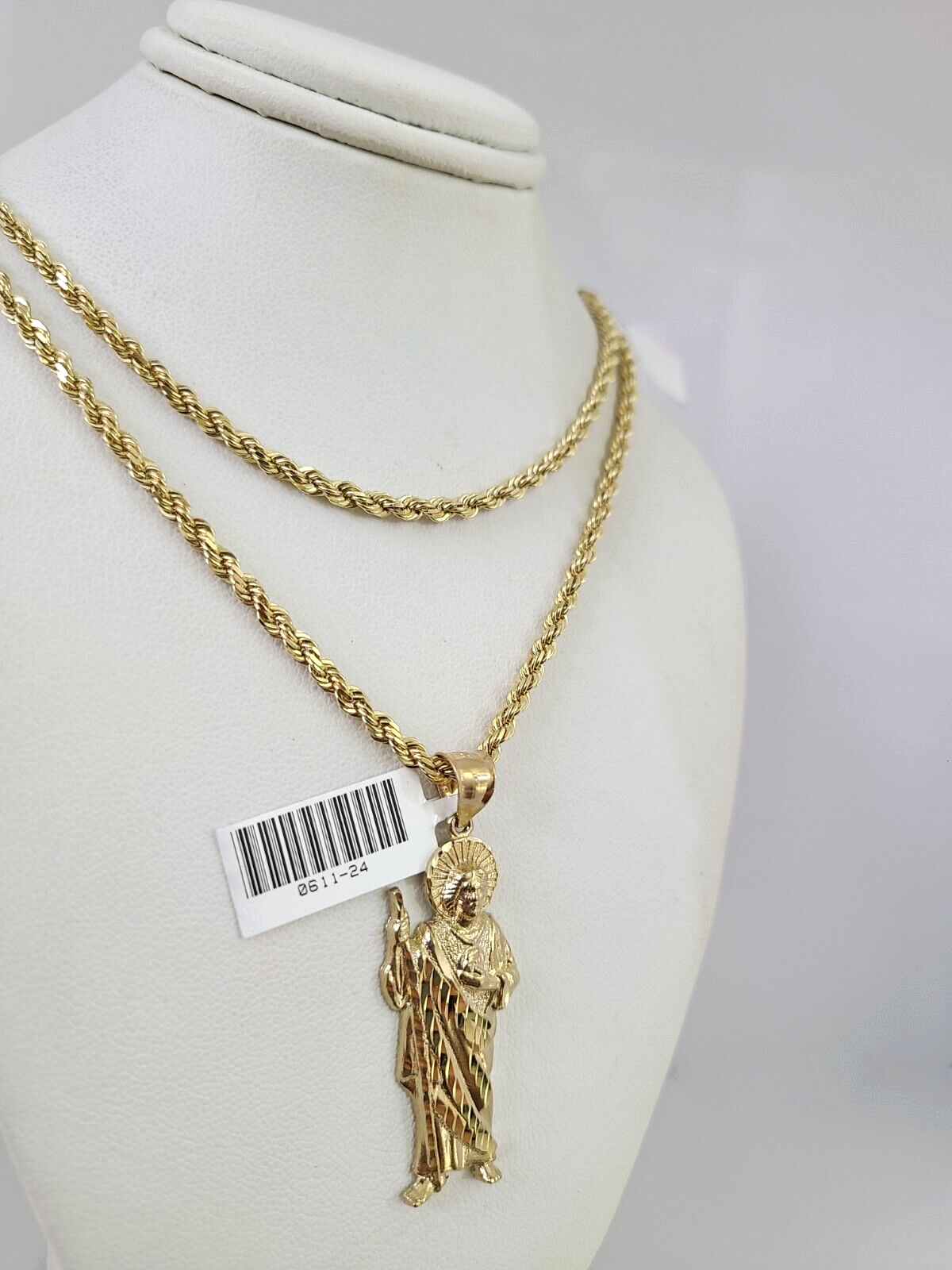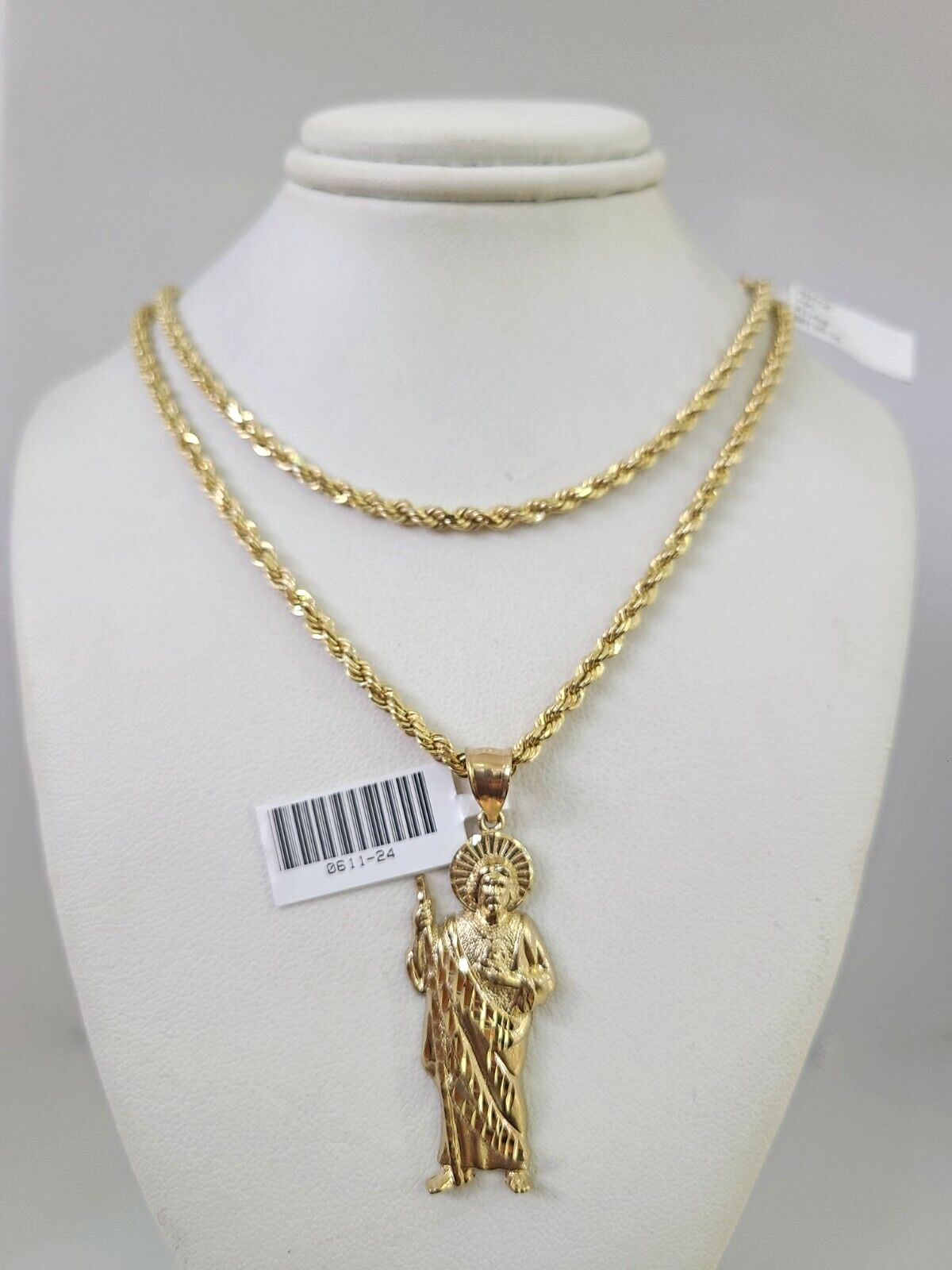 REAL 10k Solid Rope Chain Saint Jude Charm Pendant 3mm Set 18"-26" in Necklace