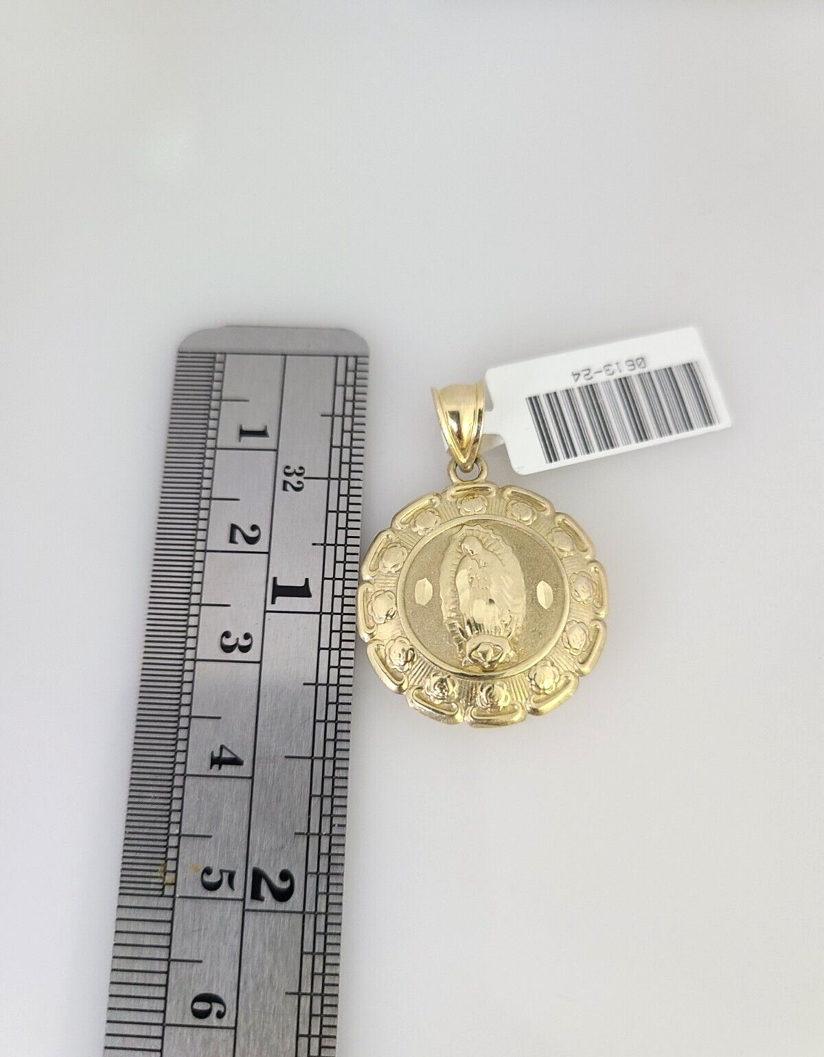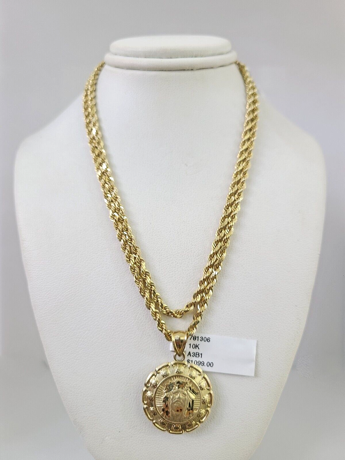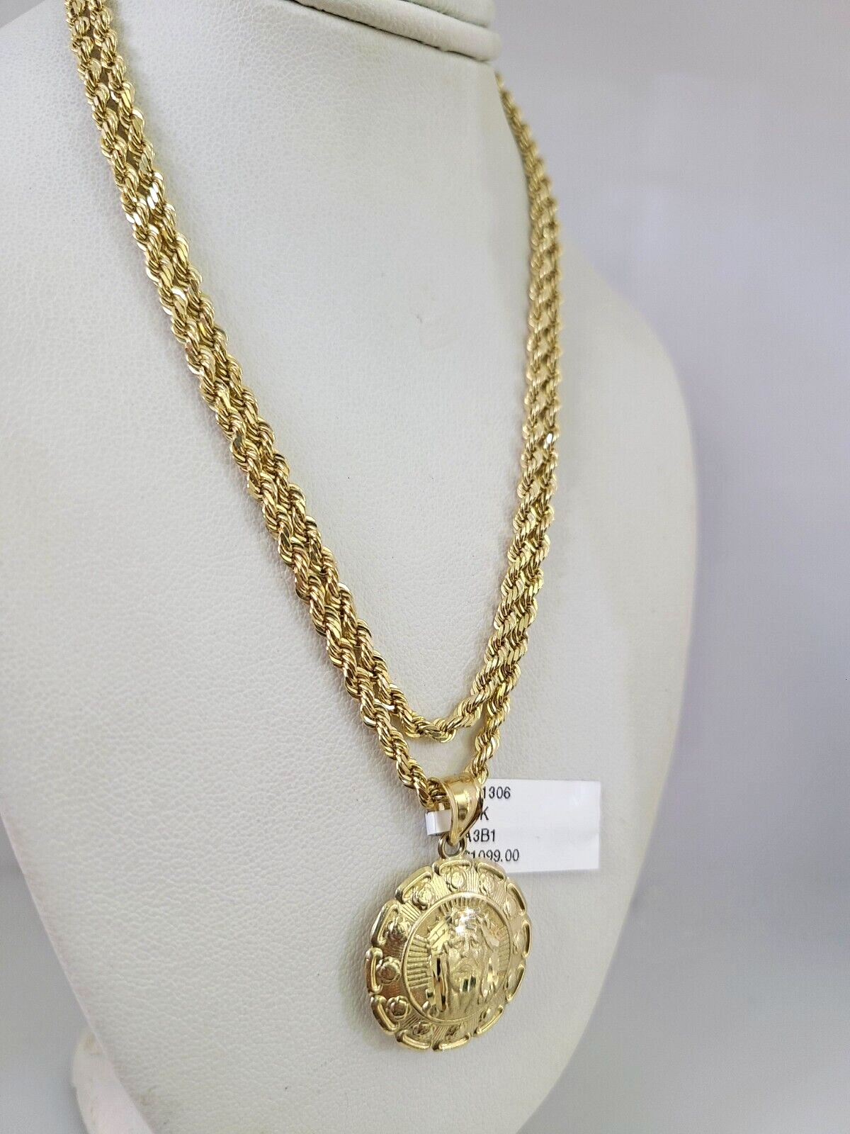 REAL 10k Solid Rope Chain Virgin Mary Jesus Charm Pendant 3mm Set 18"-26" in