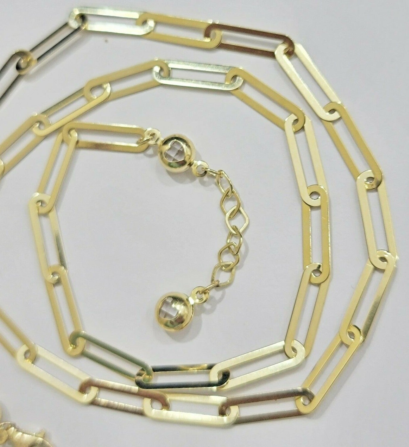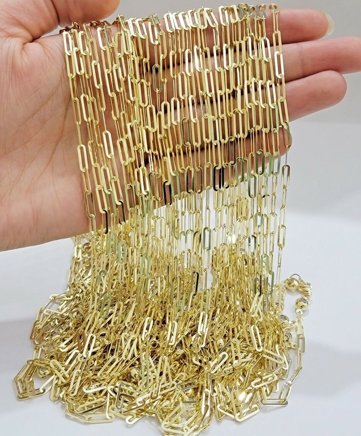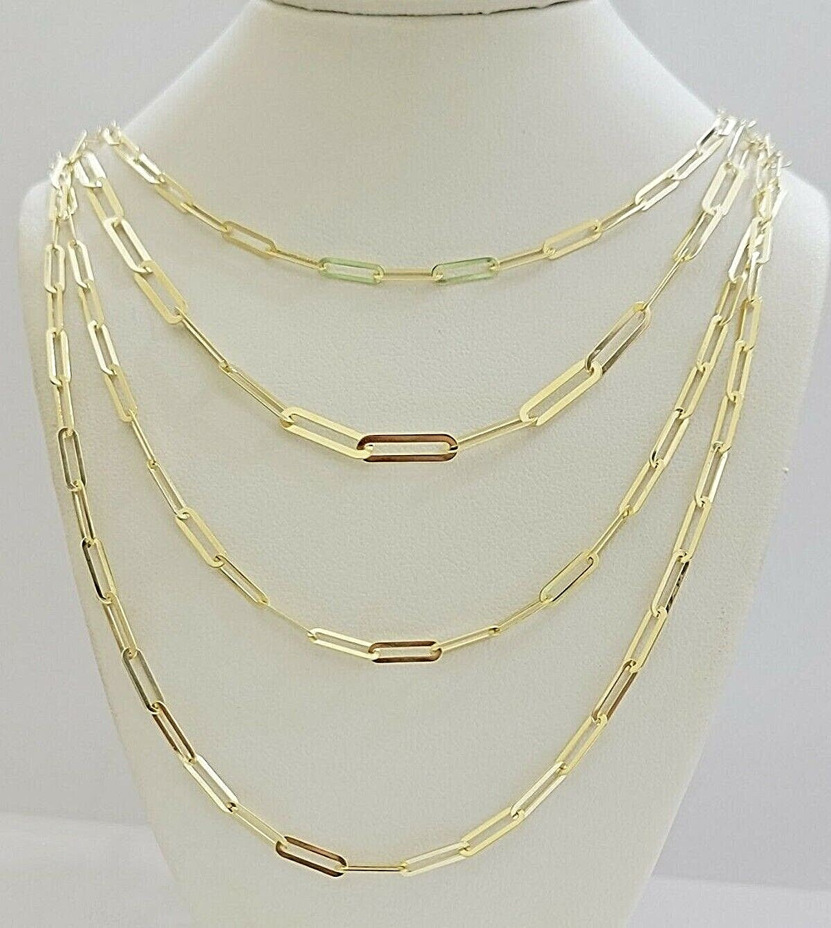 Real 10k Yellow Gold 4mm Paperclip Chain Cable Link Necklace 16"-24" Inch Hollow