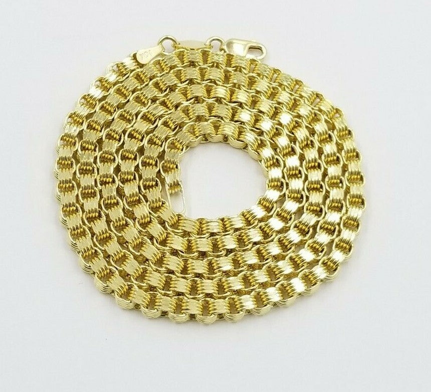 10 K Yellow Gold ( Real , Not plated , Not filled ) Byzantine Link Chain Necklace For Men's. The Width of the Chain is 5 mm and 24 Inches Long . The Clasp is Lobster Safety Lock which is strong and safe lock for the Chain. The Chain is beautiful designed with Byzantine style that adds more shine to the Chain. If you are not happy with the way it looks or feels, we do offer 30 - Days FREE Return shipping. If the Chain does not fits you then contact us for exchange and just pay the difference before you make up your mind for returning the item. Your satisfaction is our responsibility.