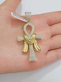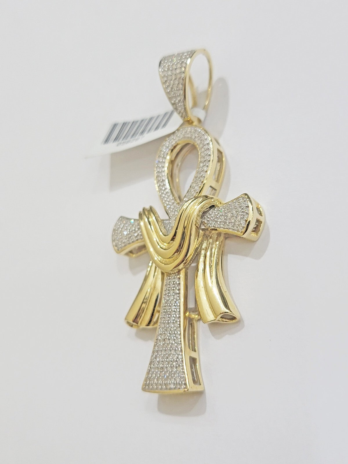 Real 10k Yellow Gold Diamond Ankh Cross Charm Pendant 0.80 CT Men's 2.5Inch