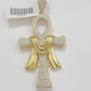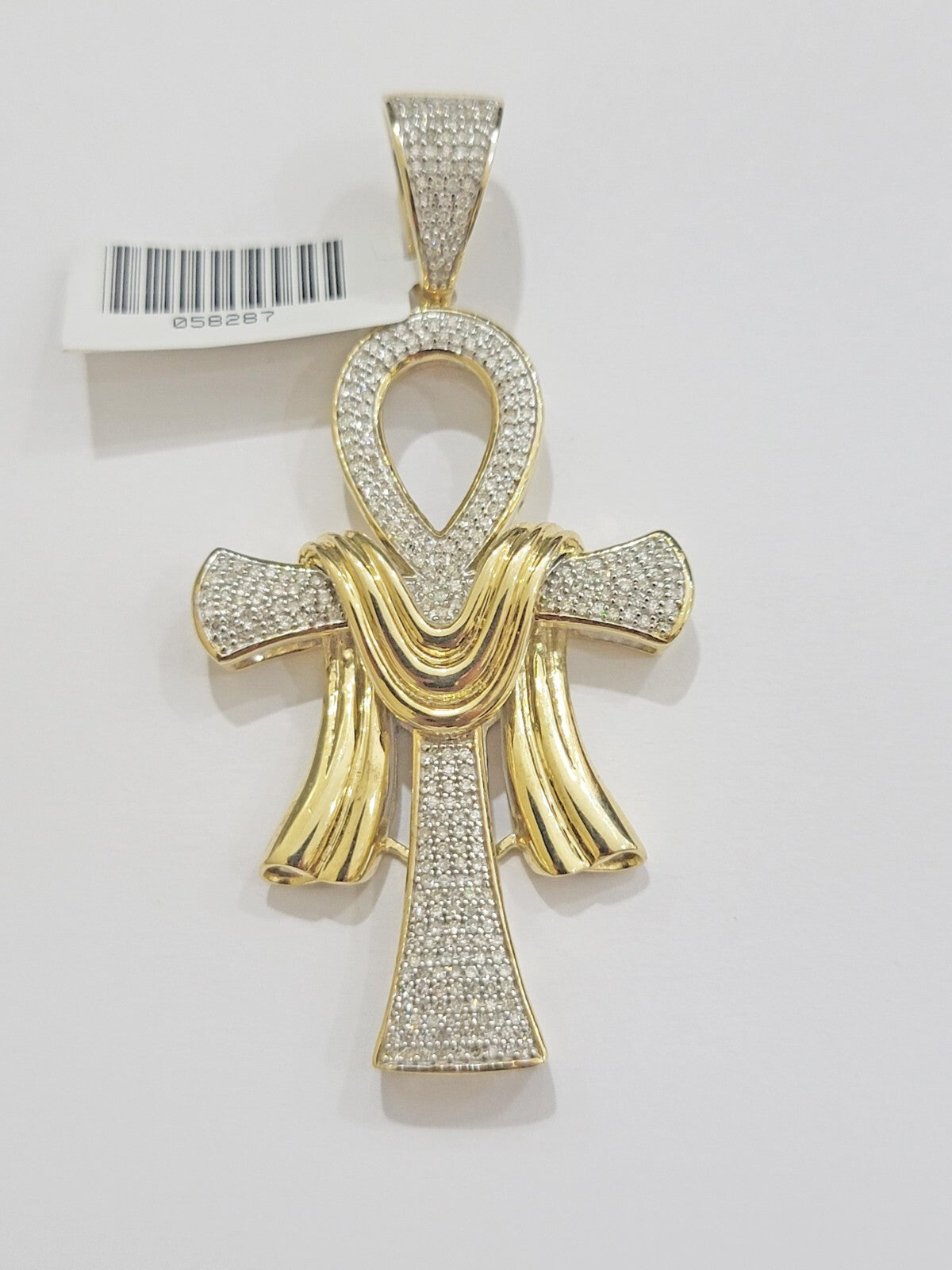 Real 10k Yellow Gold Diamond Ankh Cross Charm Pendant 0.80 CT Mens 2.5Inch