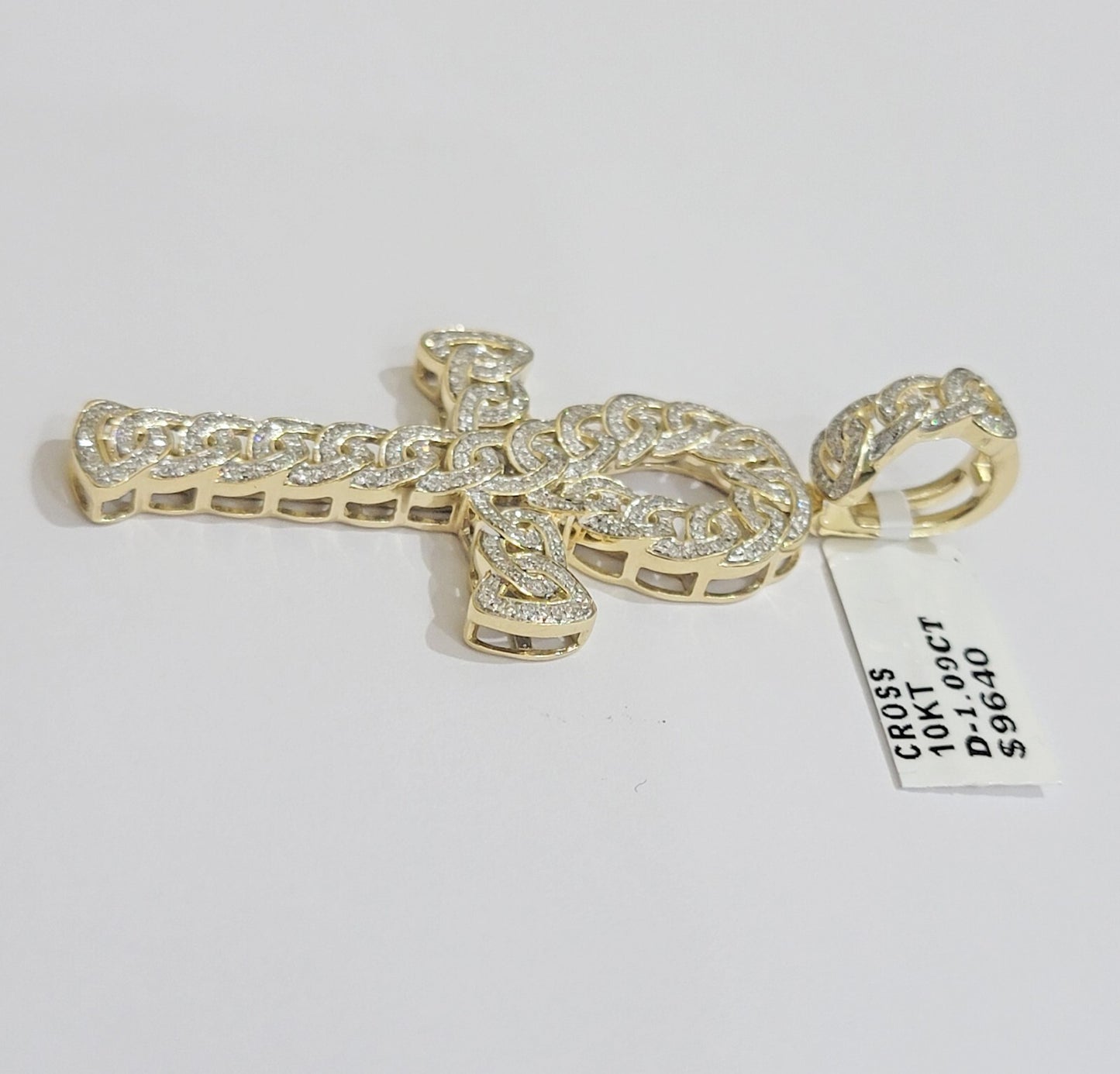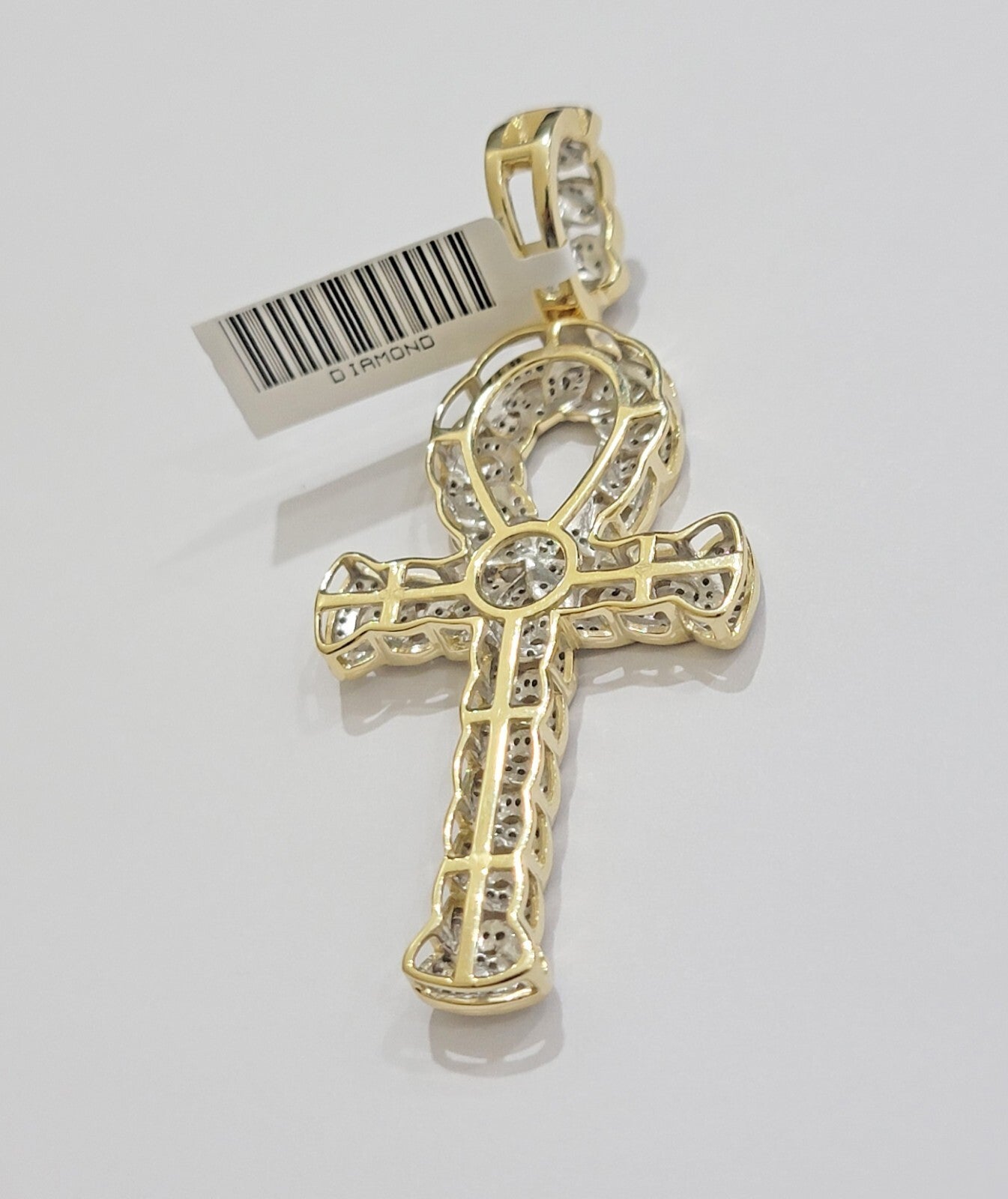 Real 10k Yellow Gold Diamond Ankh Cross Charm Pendant 1.08 CT Men's 2.5Inch
