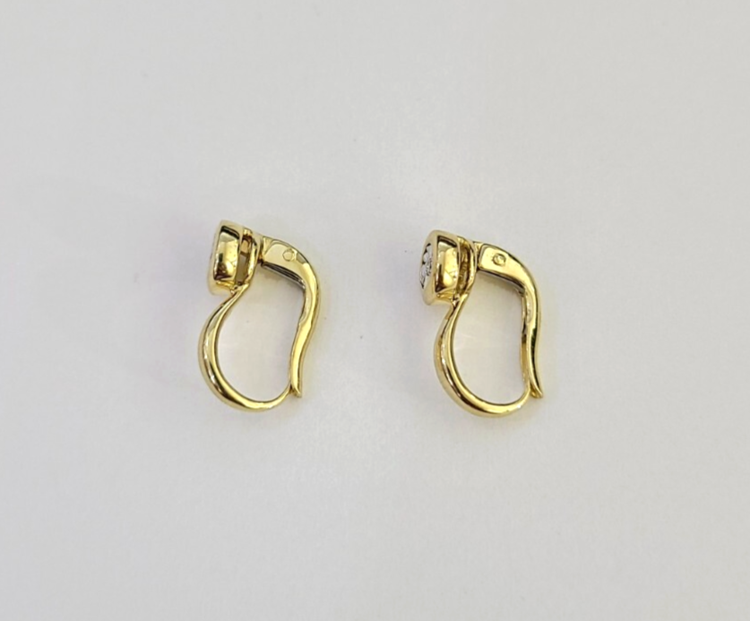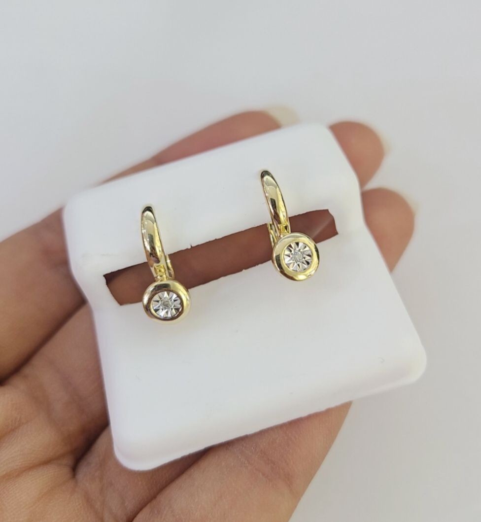 Real 10k Yellow gold Diamond Earrings Bezel Huggie Hoop Genuine
