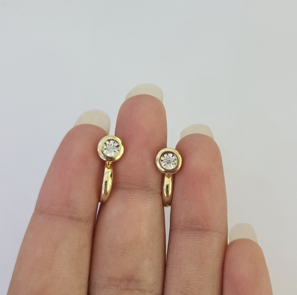 Genuine 10k Yellow Gold and Real Natural Diamond Earrings. It has round Clear Very Good Quality Diamonds. The Earring is considered durable. The Diamonds are Excellent Cut. The shape of the diamond is Round, Traditional and Classic & Timeless.