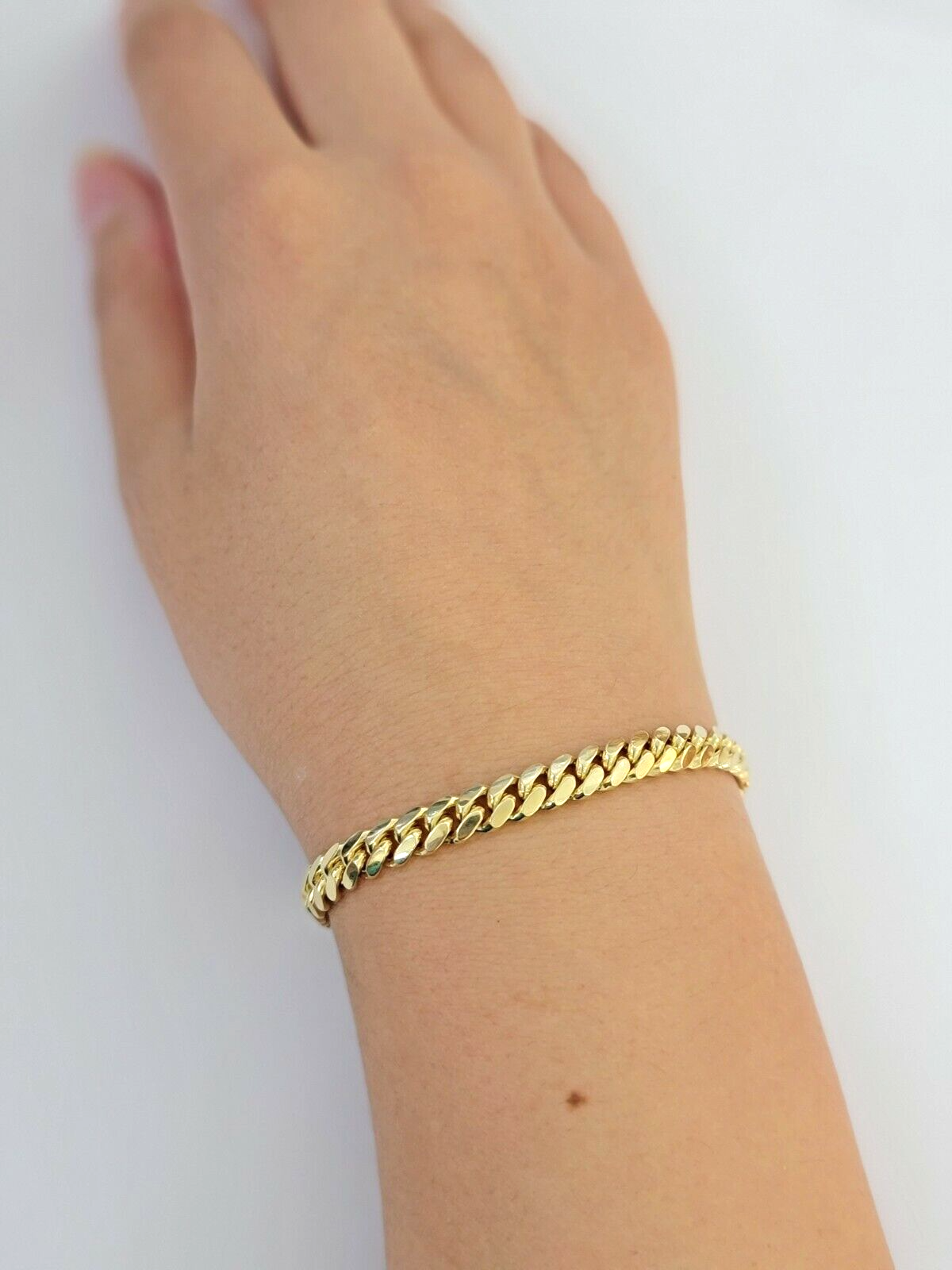 Solid 10 K Yellow Gold ( Real , Not plated , Not filled ) Miami Cuban-Link Bracelet For Ladies. The Width of the Bracelet is 6 mm ( approx.), 7 Inch Long . The Clasp is box Safety Lock which is strong. The bracelet is beautiful designed with Cuban-Link style. If you are not happy with the way it looks or feels, we do offer 30 - Days FREE Return shipping.