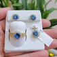 Real 10k Yellow Gold earring ring and pendant Sapphire set for ladies / Women , 10KT