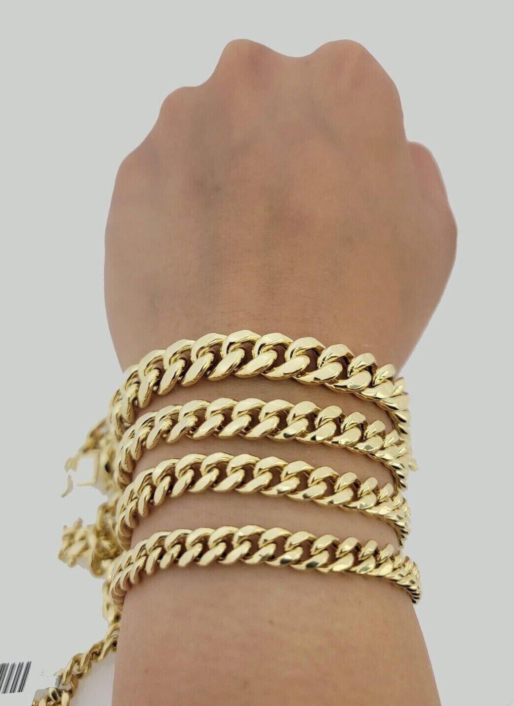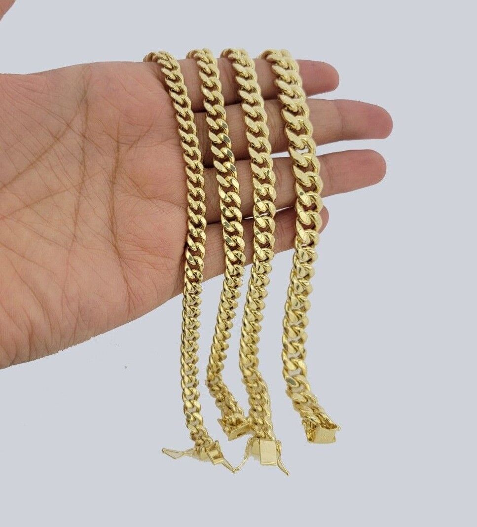 10 KT Yellow Gold ( Real , Not plated , Not filled ) Miami Cuban Link bracelets. The Width of the item is 6mm-9mm MM and in Length 7-9 Inch. The Clasp is Box Clasp Lock. The bracelet is considered durable. The necklace is 100% guaranteed 10k yellow gold and have been professionally tested and stamped 10k for purity authenticity. Even though it has a light feel, The bracelet is Strong and steady because of its thickness and weight. We guarantee the purity of the gold to be 10k, and the bracelets are NOT GOLD PLATED, NOT FILLED. If you are not happy with the way it looks or feels, we do offer