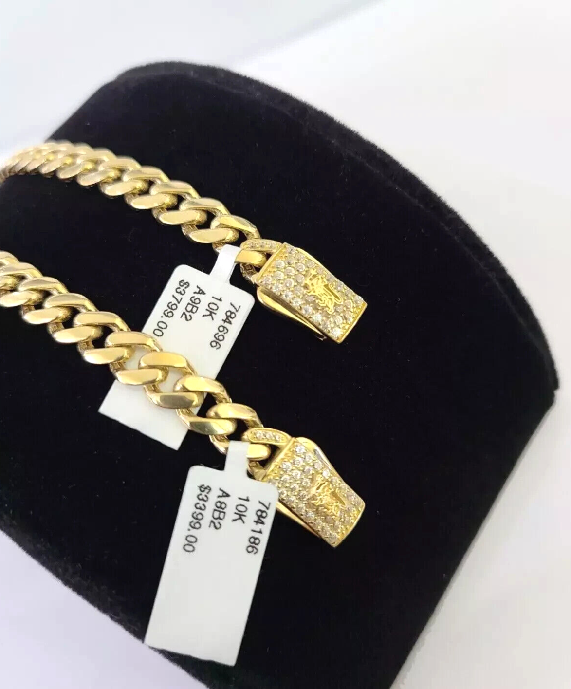 REAL 10kt Yellow Gold Bracelet Monaco Link CZ Box Lock 7mm 7'' 8'' Inch Men SALE