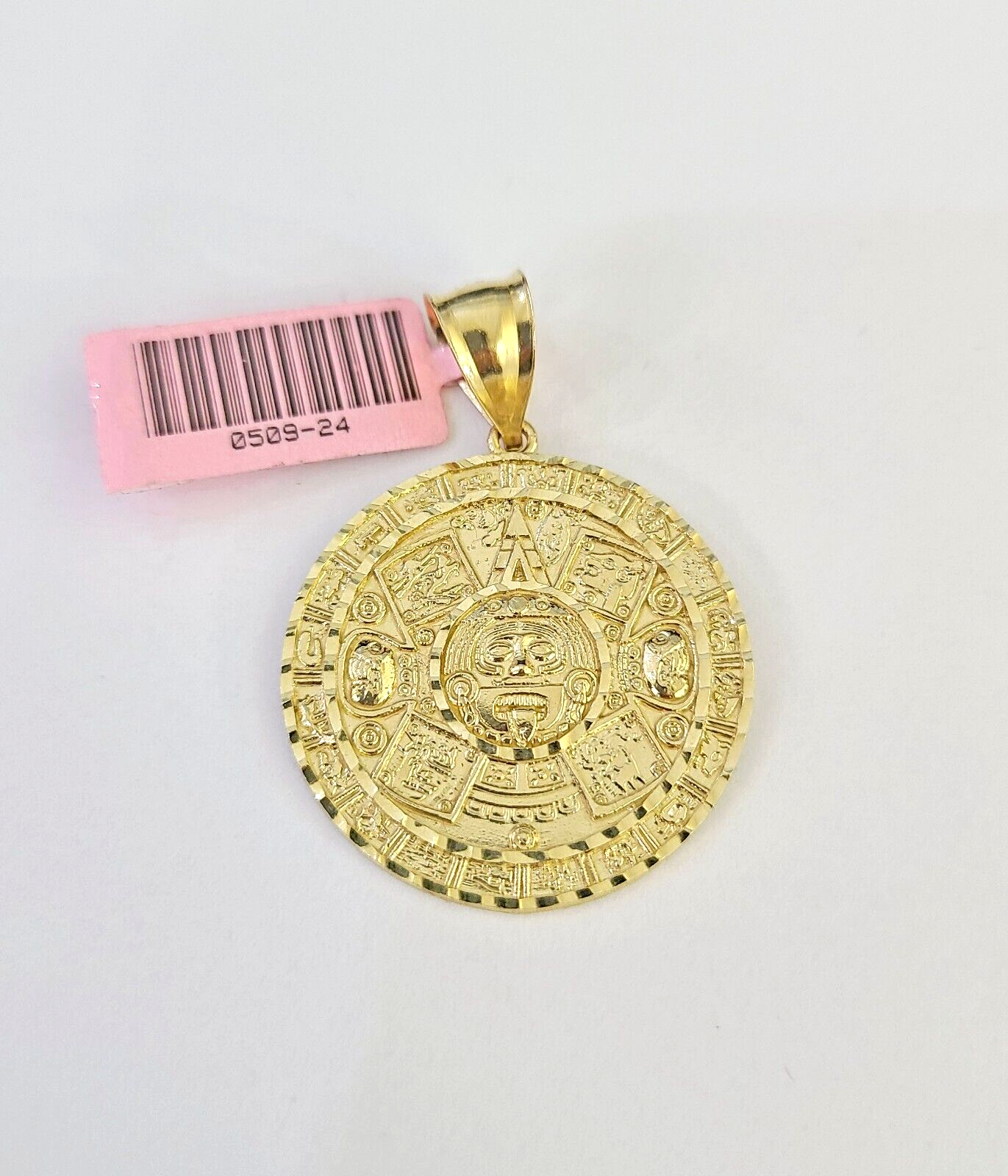 Real 14k Gold Charm Pendant Aztec Mayan Calendar 1.5" Round Style 14k