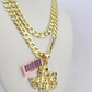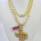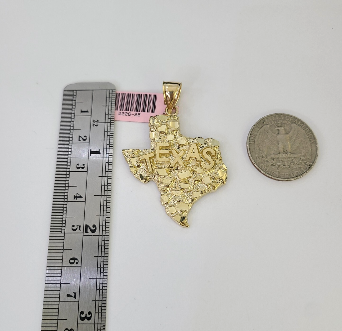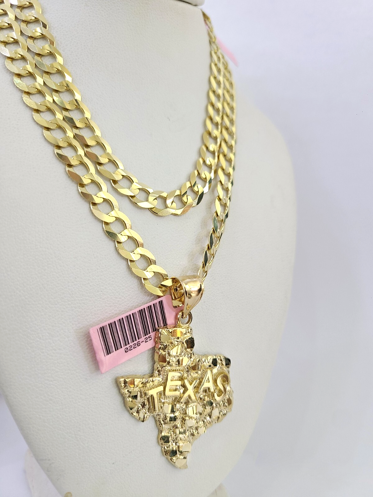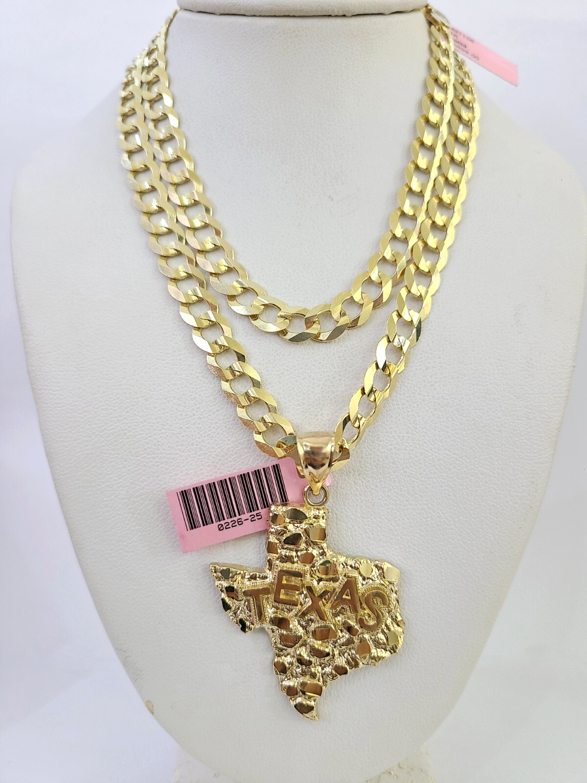 Real 14k Solid Gold Chain Nugget Texas Pendant Set Cuban Curb Chain 6mm Charm