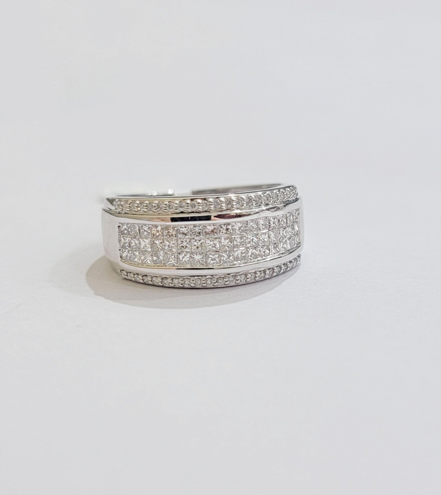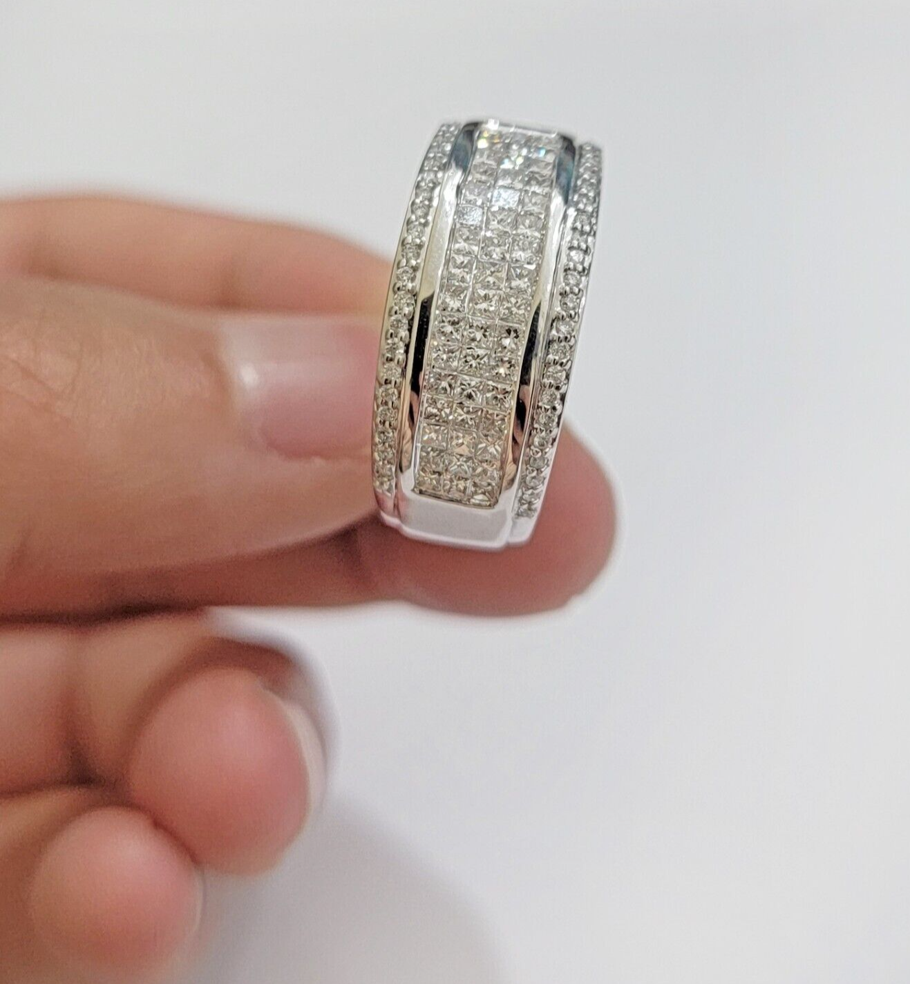 Real 14k White Diamond Ring Mens Band 0.97 Ct Princess Cut Wedding Engagement
