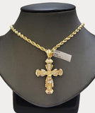 Real 14k Yellow Gold Cross pendant With Rope Chain Necklace 5mm 26" SET Charm