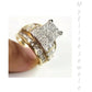 Real 14 K Yellow Gold and Real 2 CT Princess Cuts diamond Ring for Ladies. It has Round, Very Good Quality Diamonds SI2-SI1. The main Prong has princess cut Diamonds on the very top. The Ring's Side stone are round cut diamonds and Baguette diamonds runs through the upper sank. The ring comes with unique combination of all three different diamonds cut. The Diamonds are Well Cut. The shape of the diamond Ring is Round, Traditional and Classic & Timeless, it also comes with extra band ring. It flaunts Extra ordinary Bridal design ring. It comes with standard size 7, and the ring is sizable. Sizing the ring will cost you extra $29.99 on your demand.