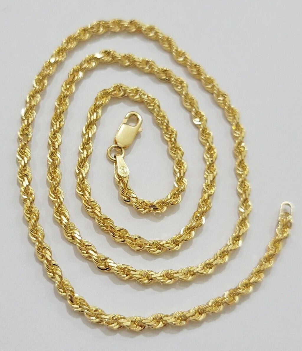 Real 18kt Yellow Gold Rope chain necklace 3mm 26'' Inches Men women SOLID HEAVY