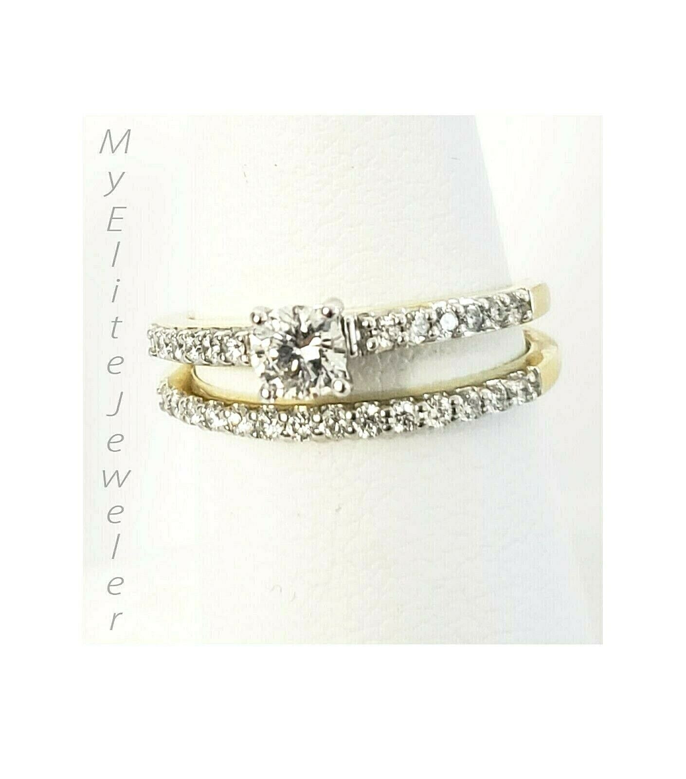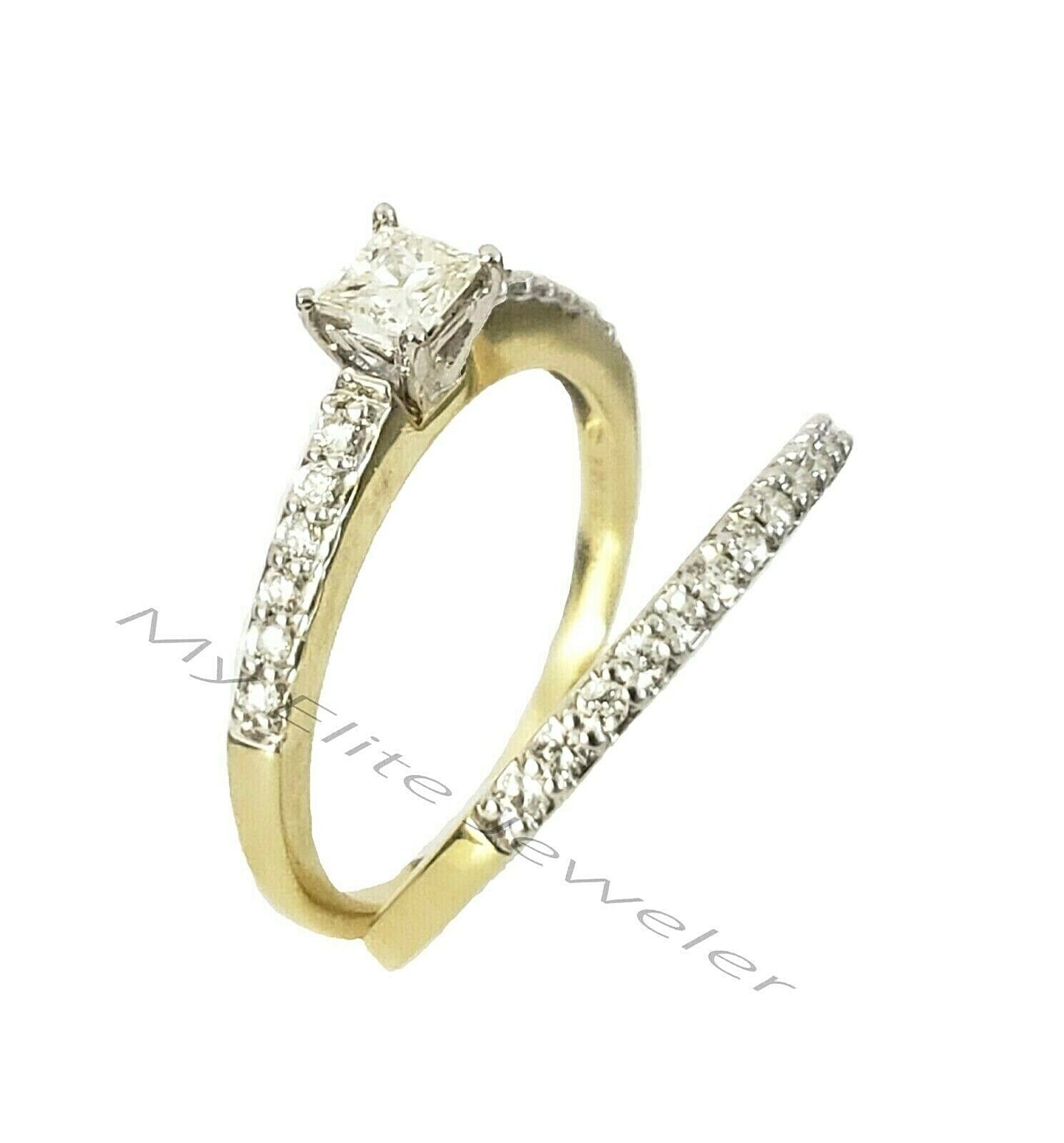 Real 14 k White Gold and Real .66 CT Solitaire diamond Ring with Plain Band for Ladies. It has Round, Very Good Quality Diamonds SI2-SI2. The main stone is Princess Cut Solitaire Diamond hold by 4 - Prong setting, the Ring has side stone that are princess cut diamonds runs through the half of the upper sank. The ring comes with extra Band that is 14 K Yellow Gold. The Diamond color is G-H. The Diamonds are Excellent Cut. The shape of the diamond Ring is Round, Traditional and Classic & Timeless. It flaunts Extra ordinary Bridal design Ring. It comes with standard size 8, and the ring is sizable. Sizing the ring will cost you extra $29.99 on your demand.