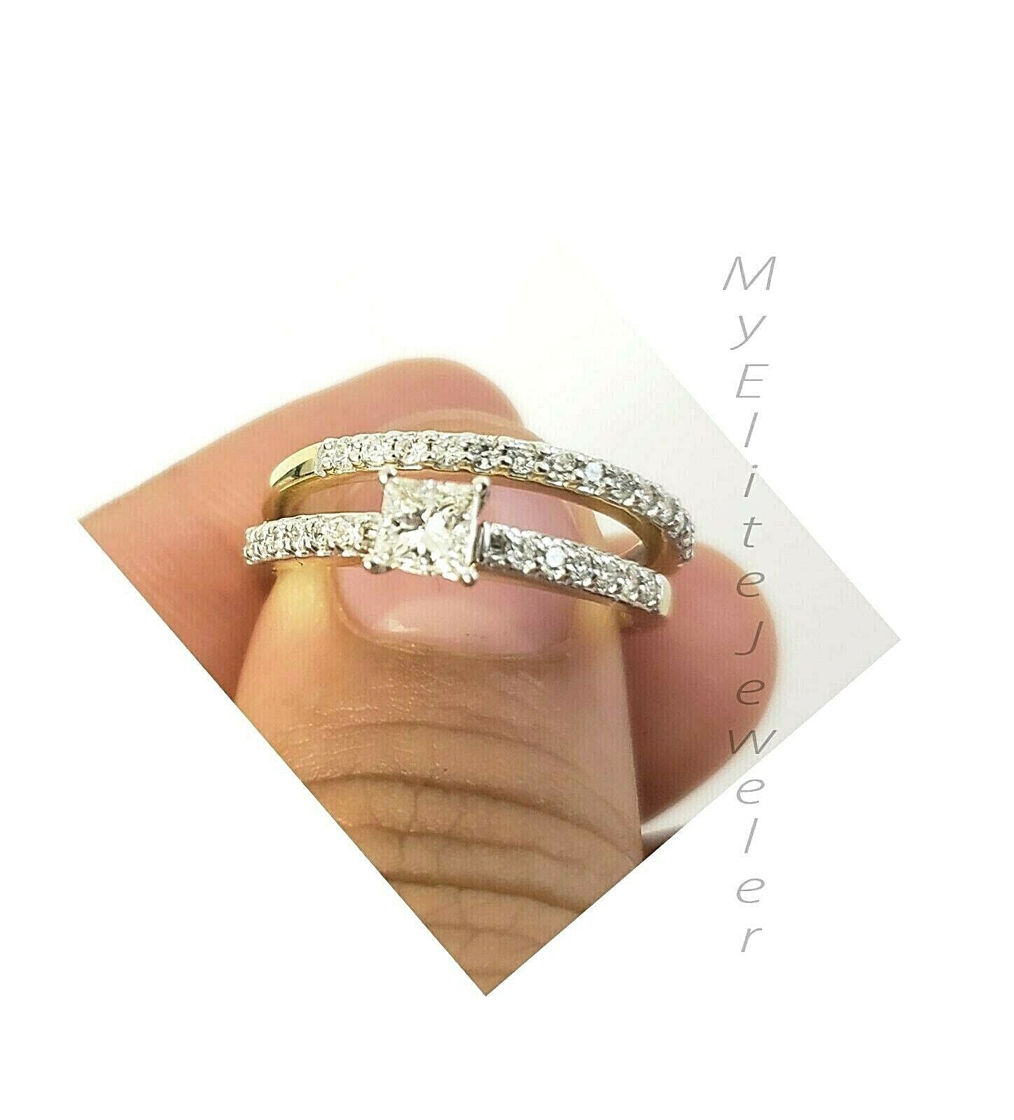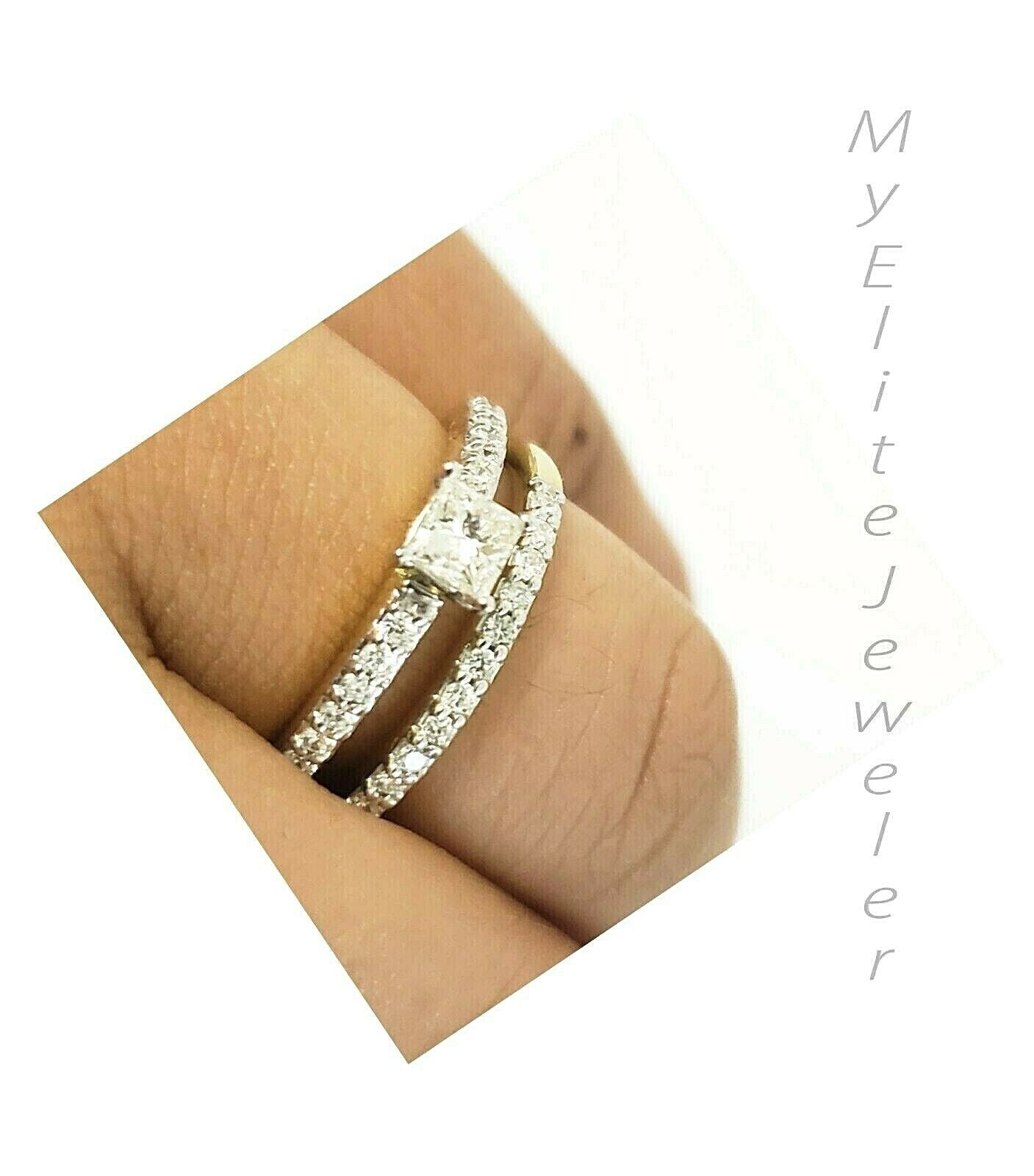 .66 CT Princess Cut Solitaire Diamond Ring 14 K Gold Engagement with Band Real Size 8