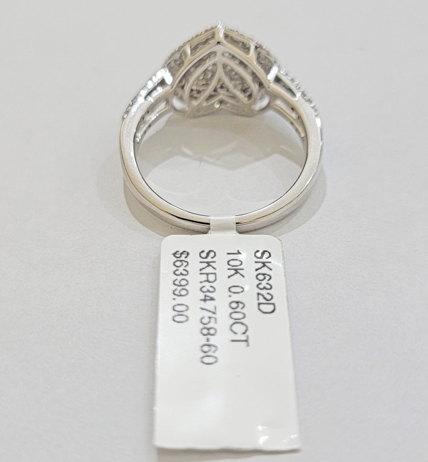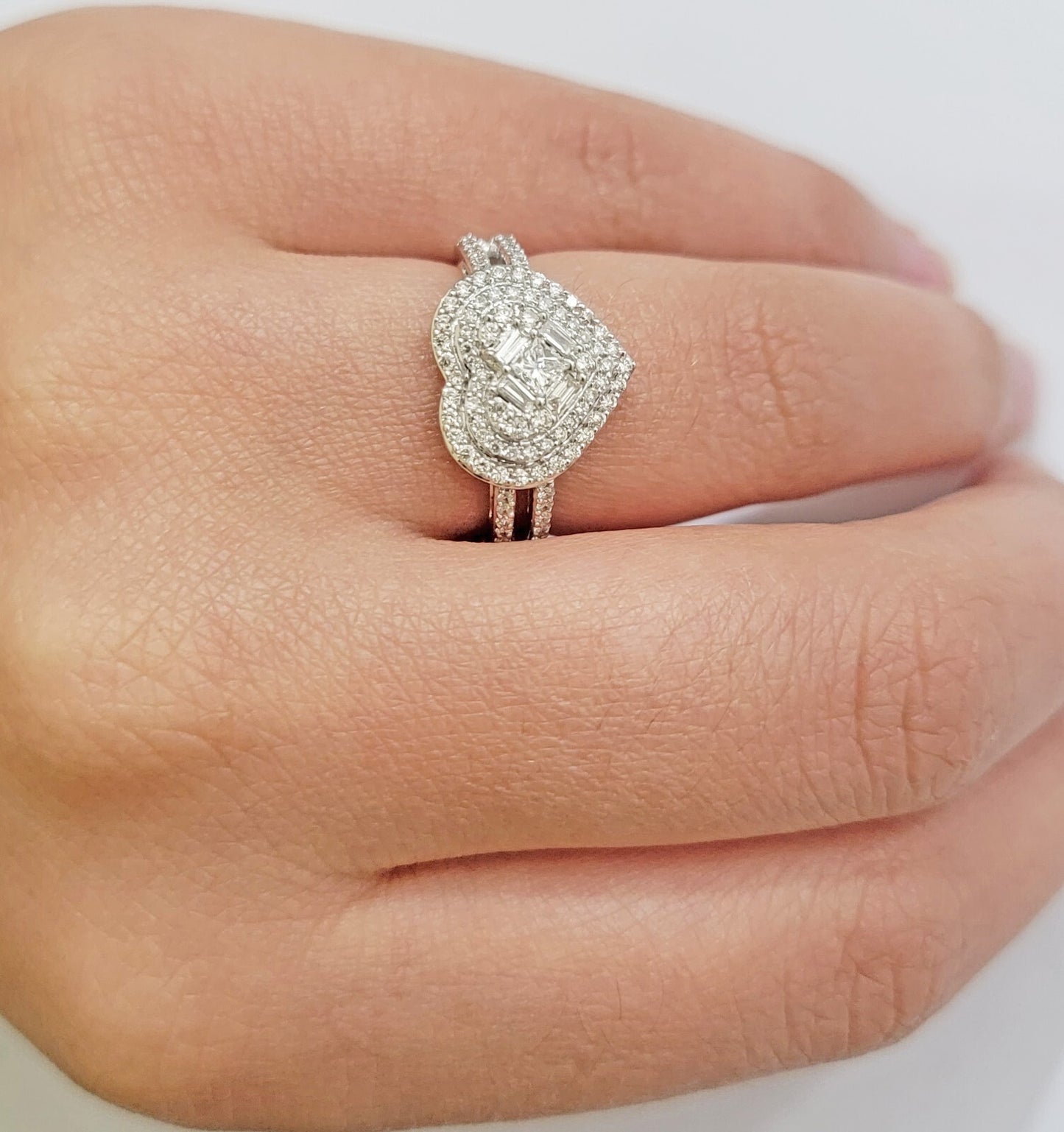Real Diamond Ring Heart Shape 10k White Gold 0.60 CT Natural Diamond Ladies Band
