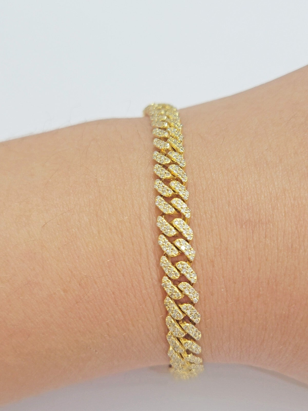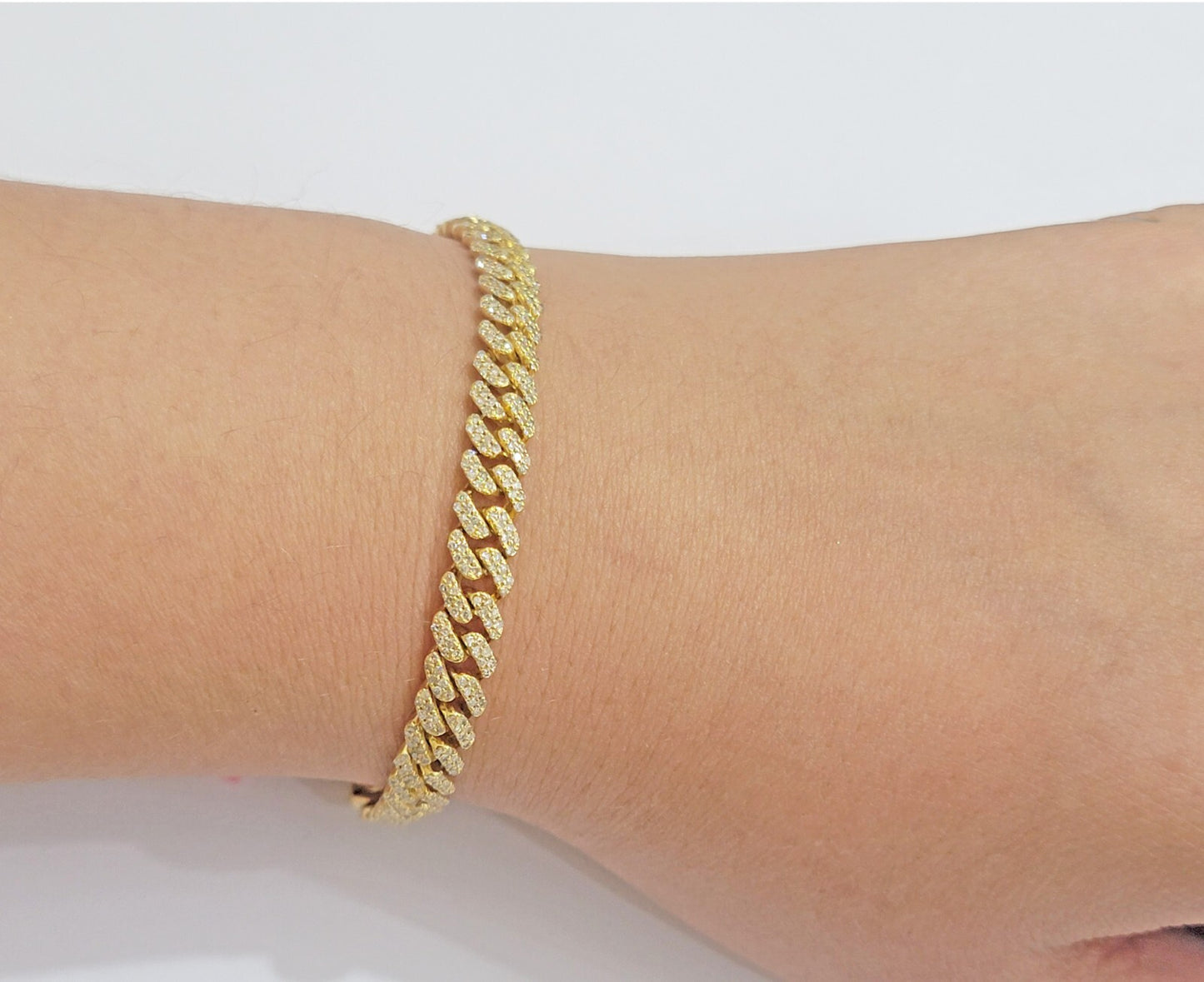 Real diamonds bracelet cuban link 10kt Yellow Gold Solid 7.5 Inch men women