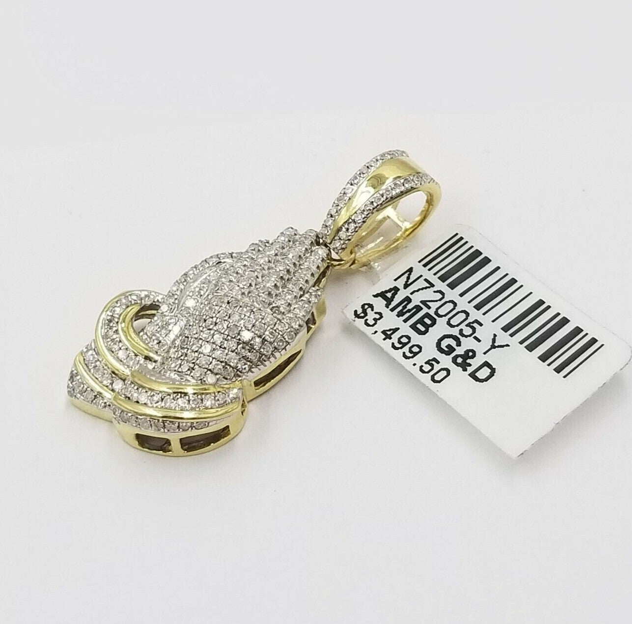 10 k Yellow Gold Real (Not plated , Not filled ) Yellow Diamond Praying hand charm pendant . The Length of the Pendant is 1.2 inches (approx. ) Long. The pendant can be worn with any chain. The pendant is considered durable. If you are not happy with the way it looks or feels, we do offer FREE Return shipping..