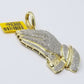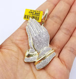 Real Diamonds Praying hand Charm Pendant 1.40CT, 2.4 Inch ,10KT Real Yellow Gold