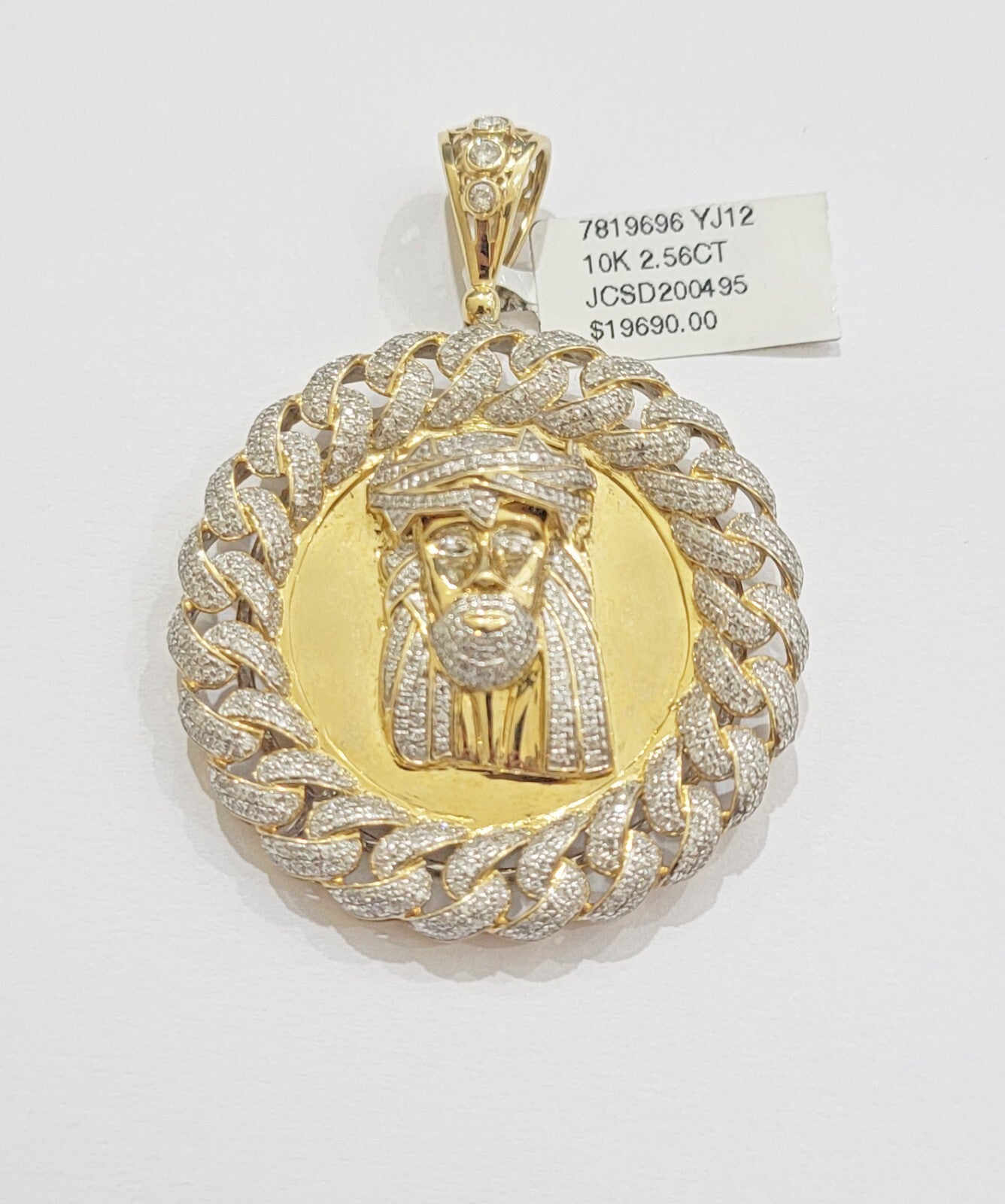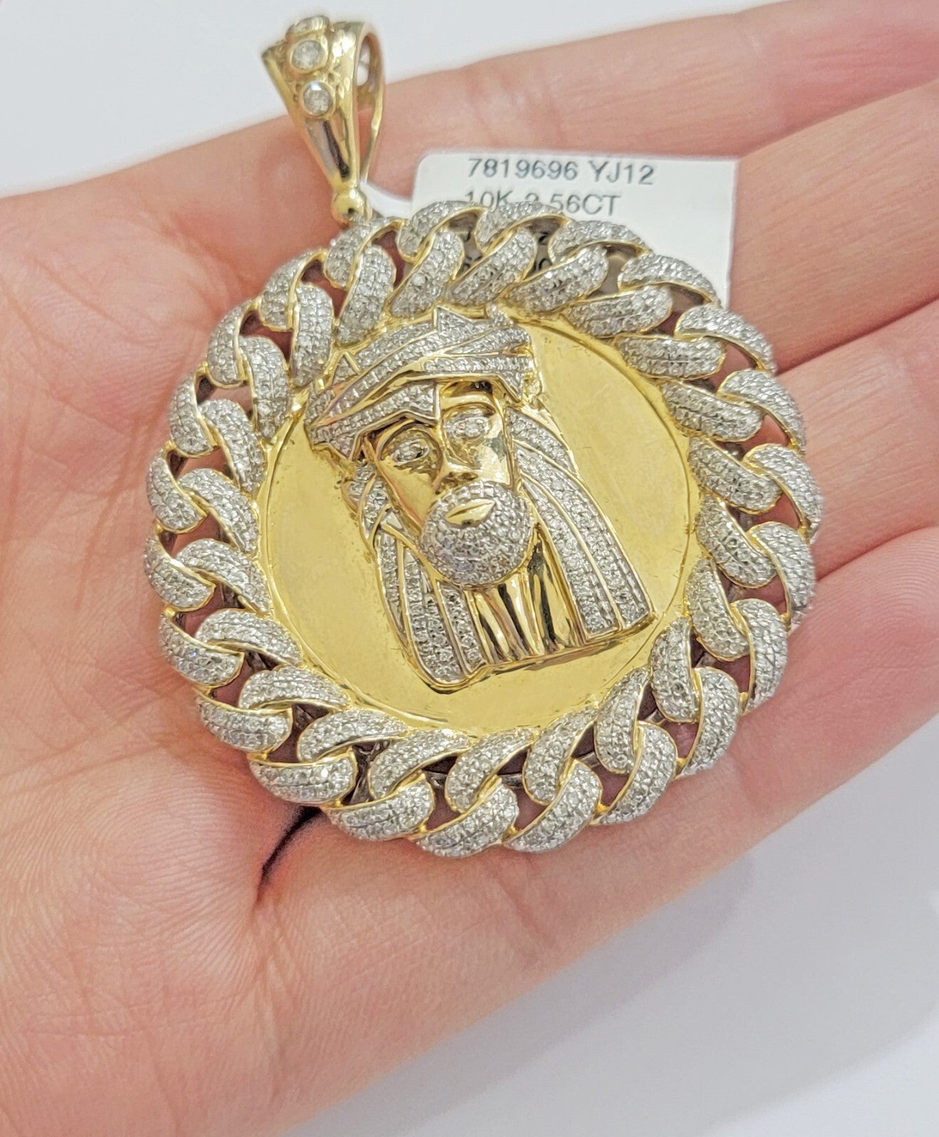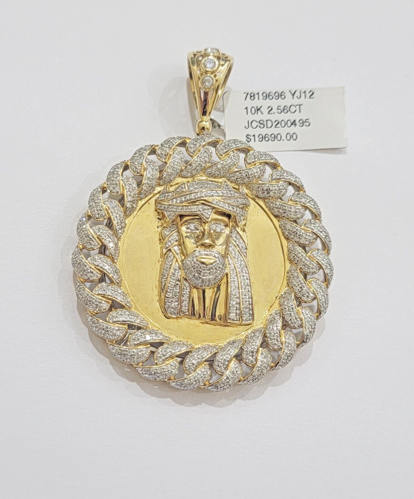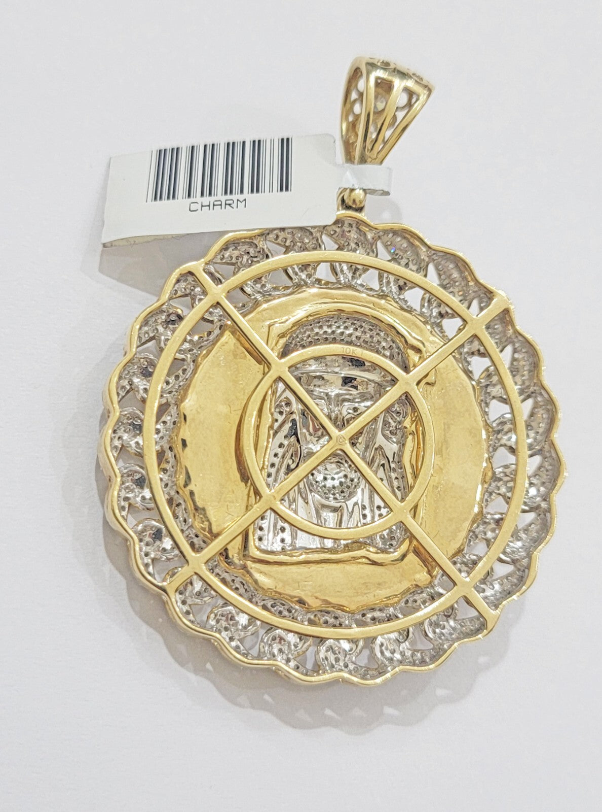 10 k Yellow Gold Real (Not plated , Not filled ) Yellow Diamond Jesus head charm pendant . The Length of the Pendant is 2.3 inches (approx. ) Long. The pendant can be worn with any chain. The pendant is considered durable. If you are not happy with the way it looks or feels, we do offer FREE Return shipping..