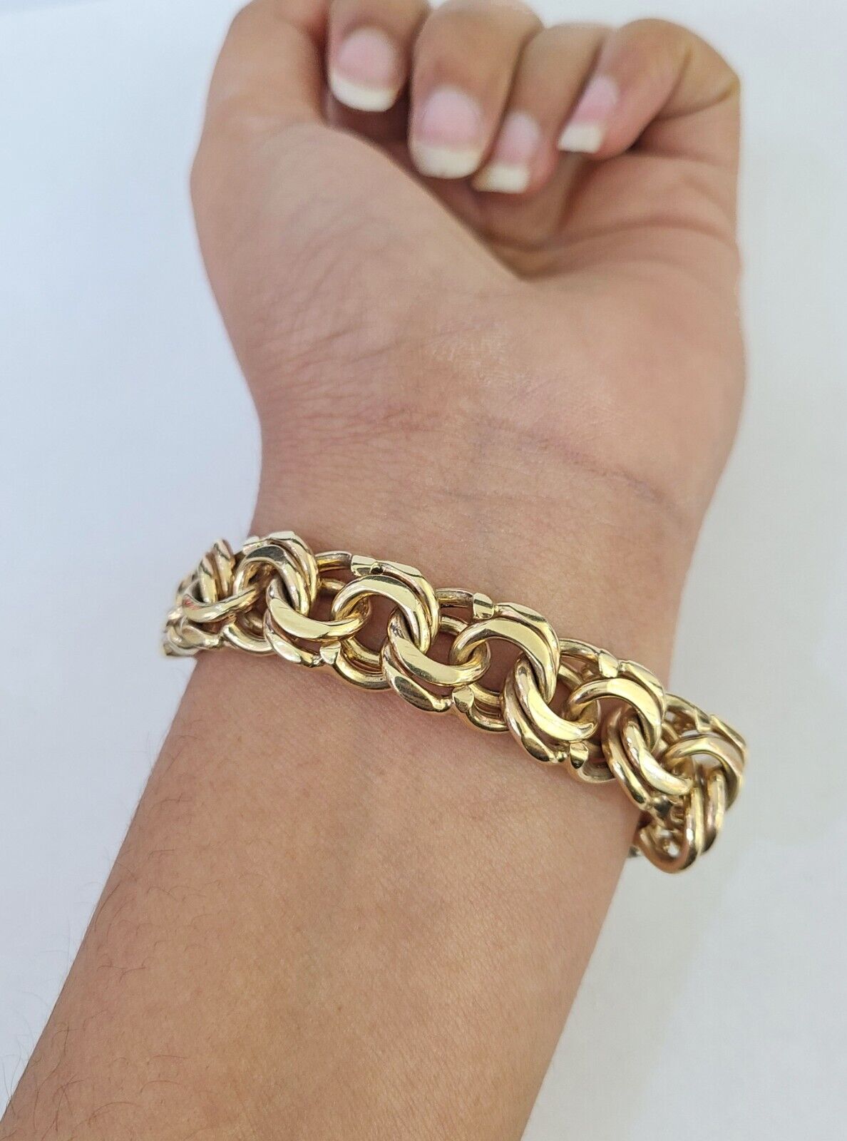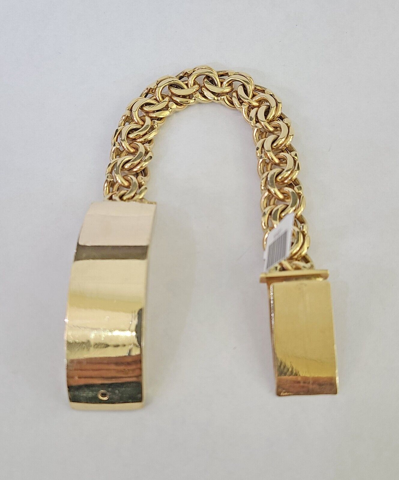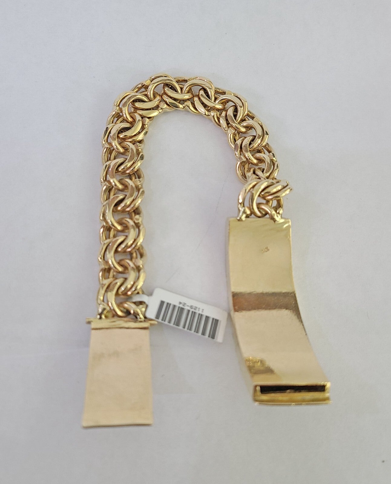 10K Solid Yellow Gold ( Real , Not plated , Not filled ) Chino ID Bracelet. The Width of the Bracelet is 14mm (approx.)(width of the link), 8.5 Inches Long . The Clasp is Chino Lock which is strong. The bracelet is beautiful designed with Chino style. If you are not happy with the way it looks or feels, we do offer 30 - Days FREE Return shipping.
