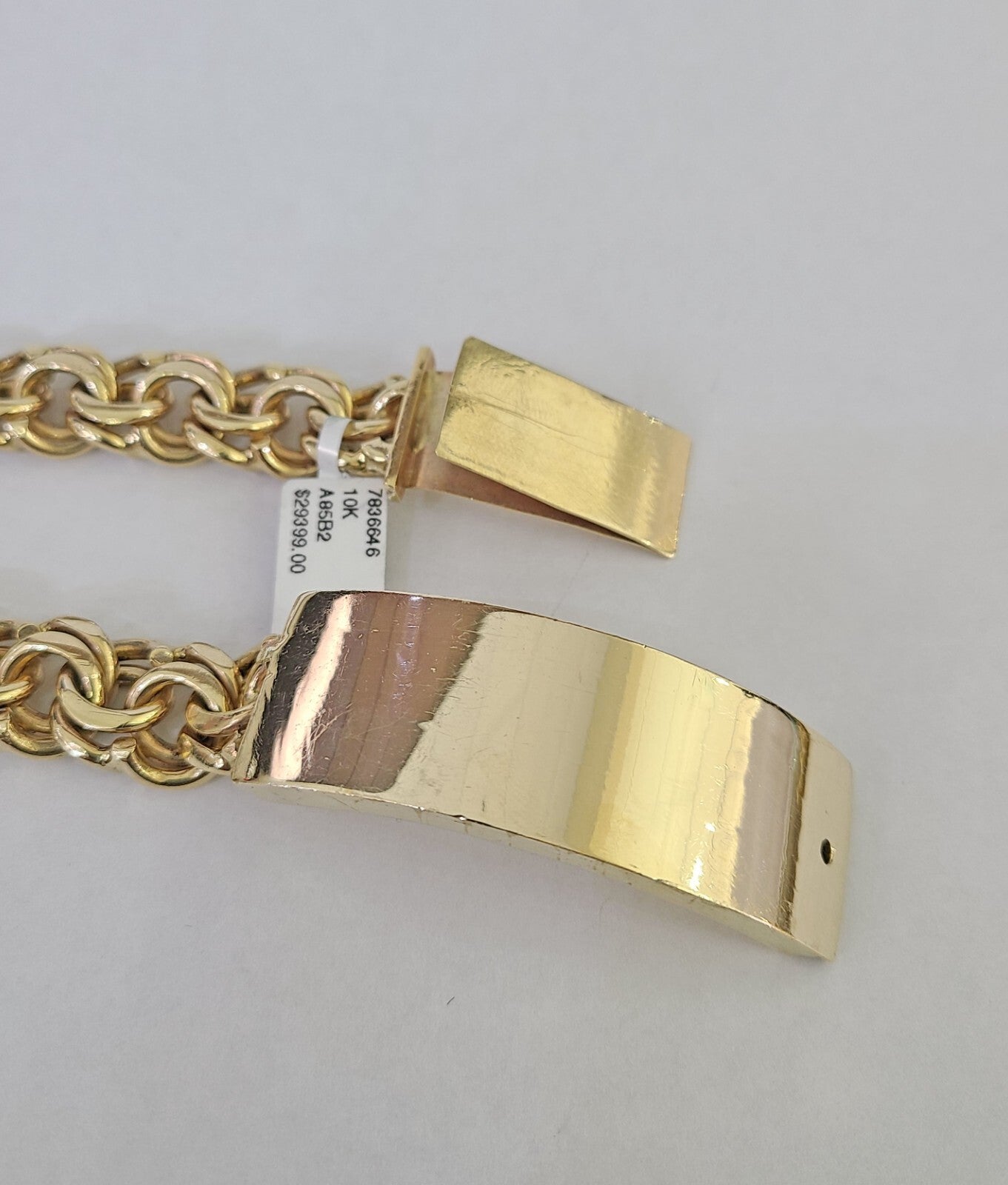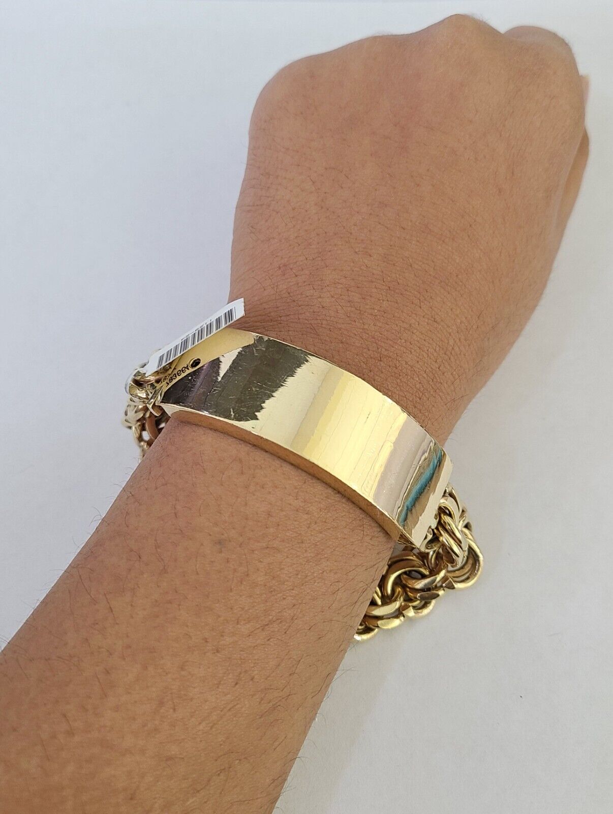 Real Solid 10kt Gold Chino ID Name Plate Bracelet 14mm 8.5'' Inch 10k SALE NEW
