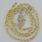 Solid 10k Gold Rope Chain Diamond Pendant Hamza Hand Charm Necklace 22" SET REAL