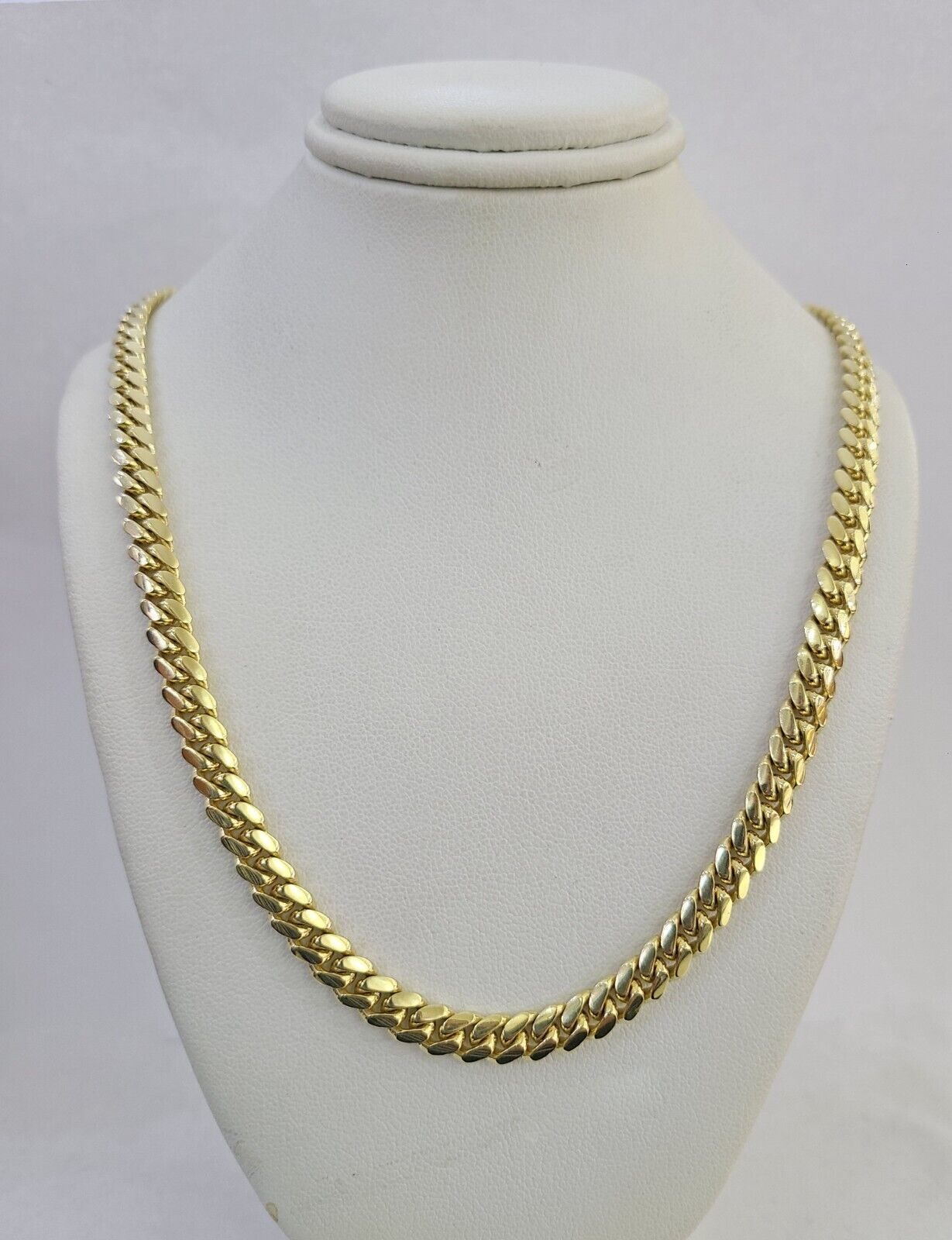 Solid 10k Yellow Gold Chain Miami Cuban Link Necklace 6mm Box Lock 10kt For Men's