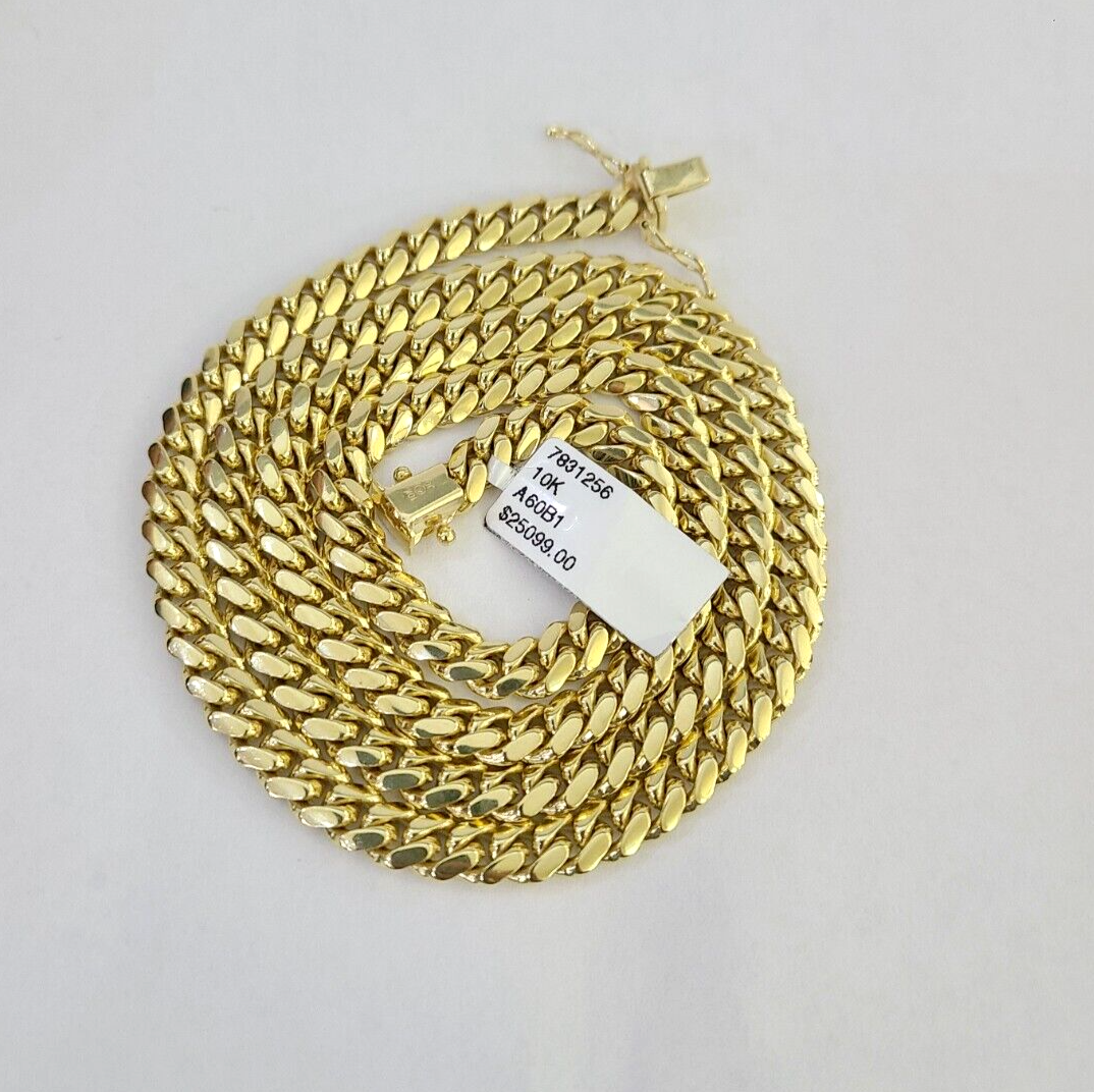 Solid 10k Yellow Gold Chain Miami Cuban Link Necklace 6mm Box Lock 10kt For Men's
