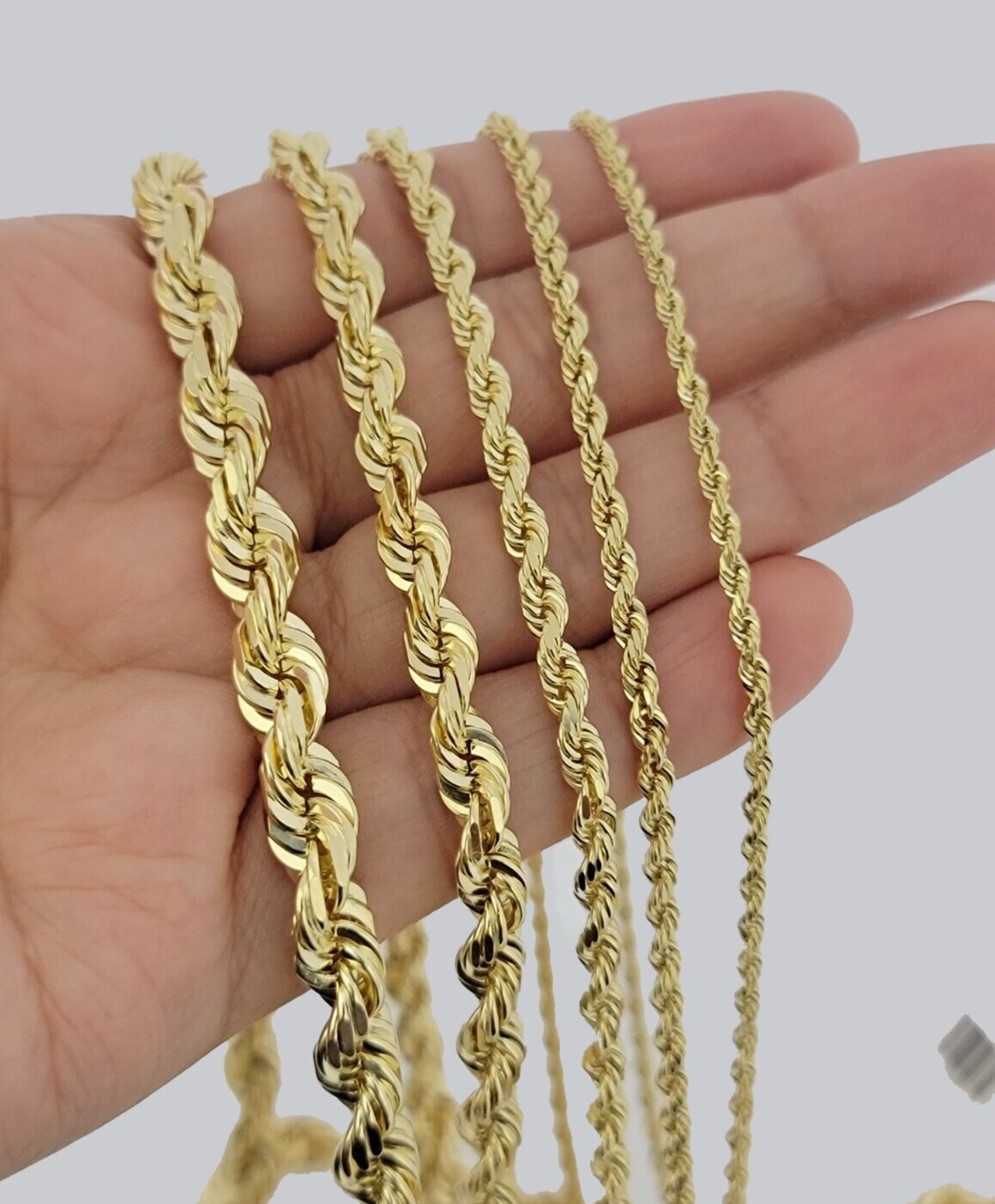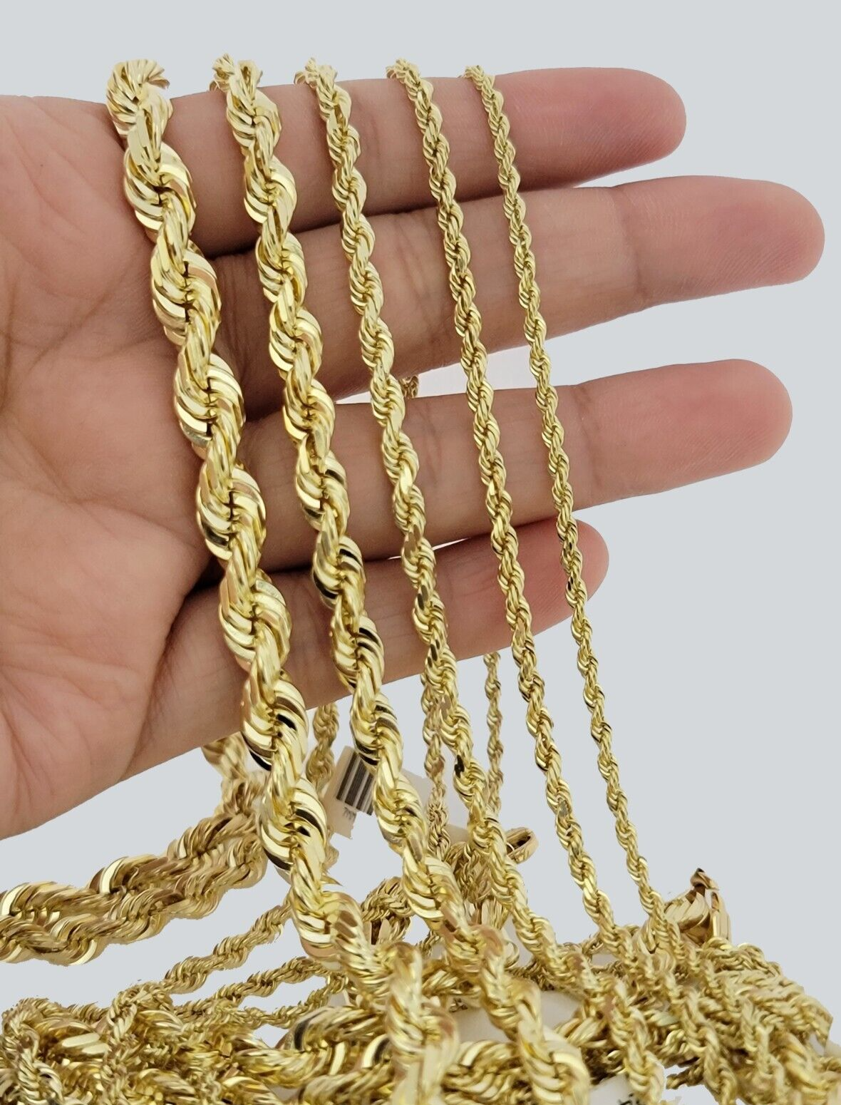 Solid 10kt Gold Rope Chain Necklace 2.5mm 3mm 4mm 5mm 6mm 7mm Diamond Cuts SALE