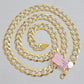 The chain is Pure 100 % 14 k Gold. It is all the way Real. These chains are 100% authentic 14K Gold "not Plated or filled" Are solid Solid ( heavy)