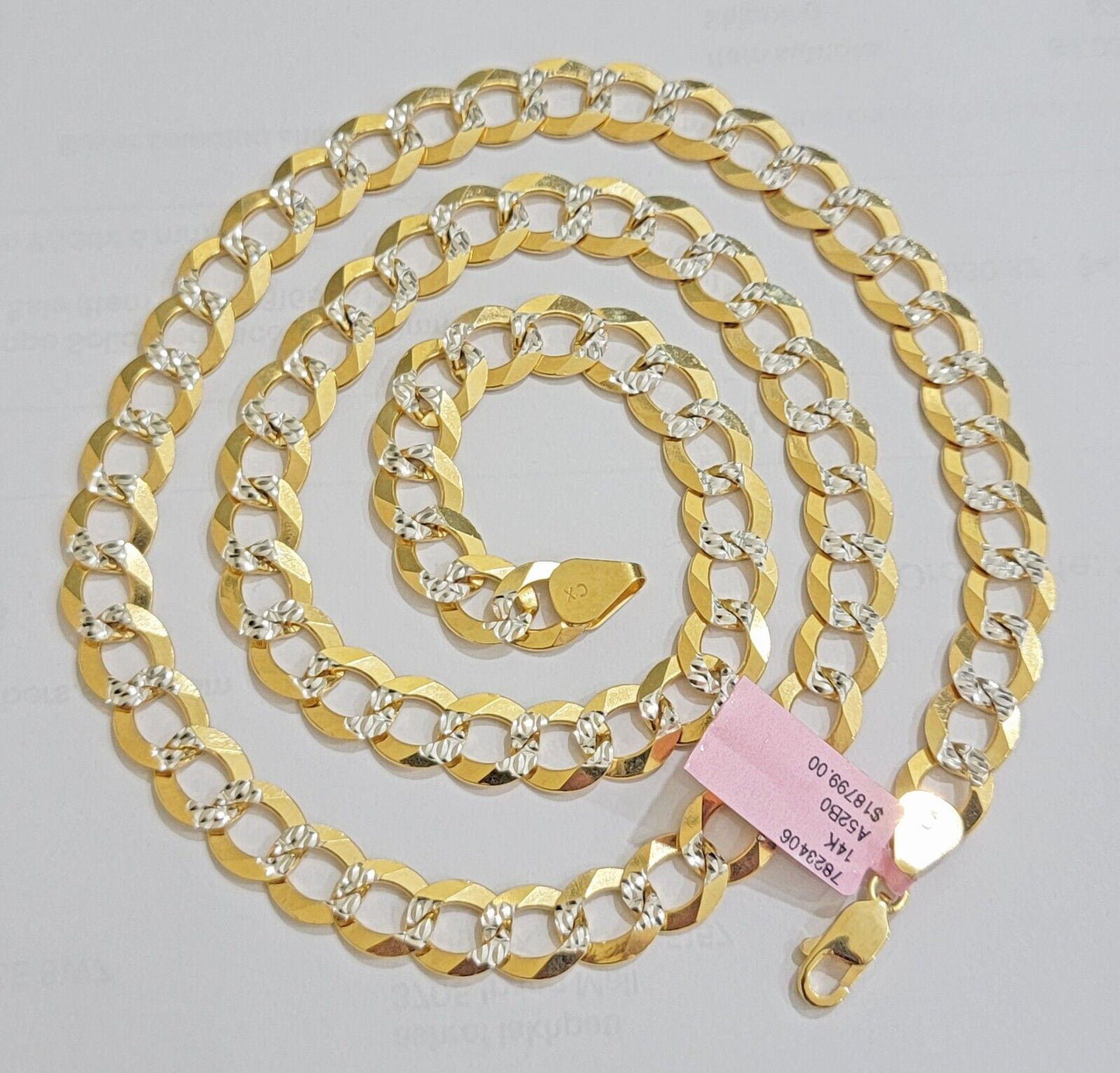 Solid 14k Gold Chain necklace Cuban Curb Link 9.5mm Two-Tone Diamond Cut 20-30"