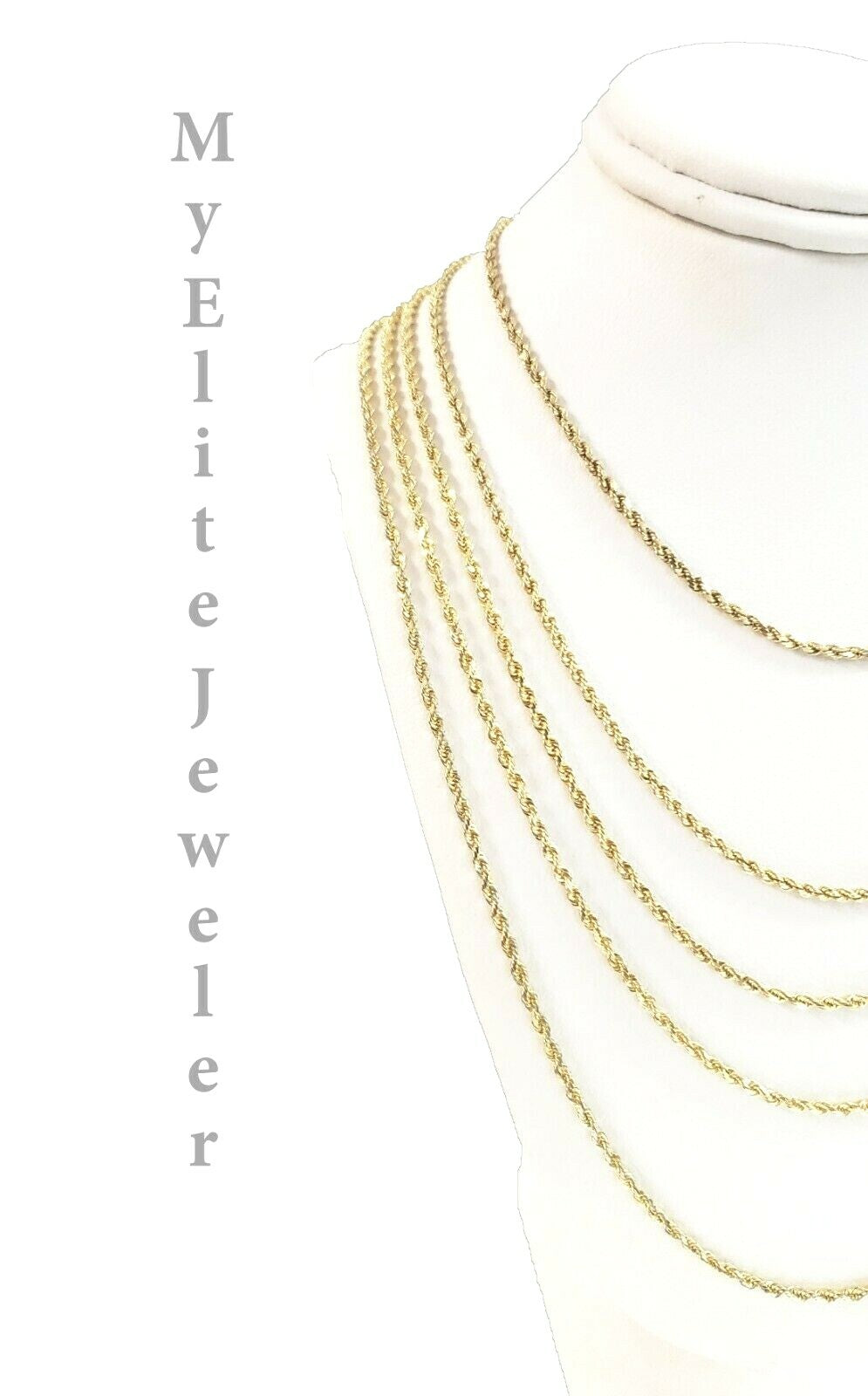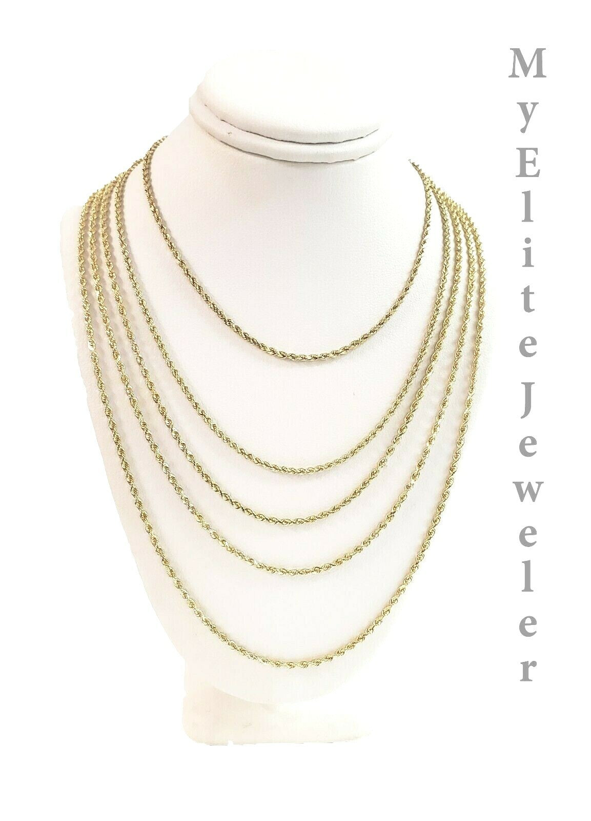 10 K Solid Rope Link chain. It is not plated, or filled or overlaid . It is 100% Genuine 10 k Gold. The Width of the necklace is 2 mm and Various Length stating From 18 Inches - 28 Inches. The Clasp is lobster Safety. The chain is considered durable. If you are not happy with the way it looks or feels, we do offer 30 - Days FREE Return shipping. Contact us for more information.