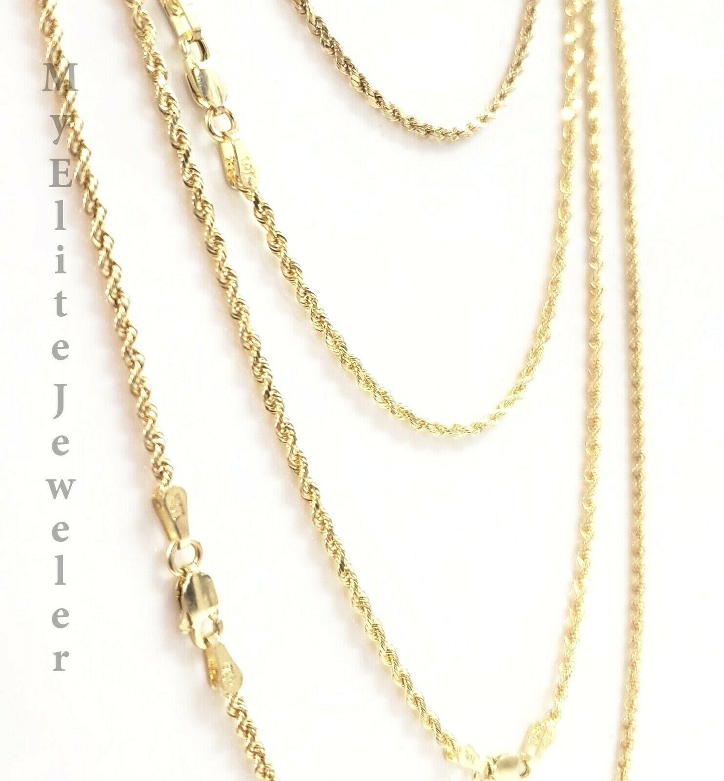 SOLID 2mm 10k Gold Rope Chain Necklace 16"- 26" 100% 10k yellow Gold Solid, Thin