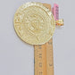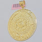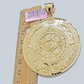 SOLID Real 14kt Yellow Gold Pendant Aztec Mayan Calendar Men's Charm Medallion, 3.25" Men's Round Charm
