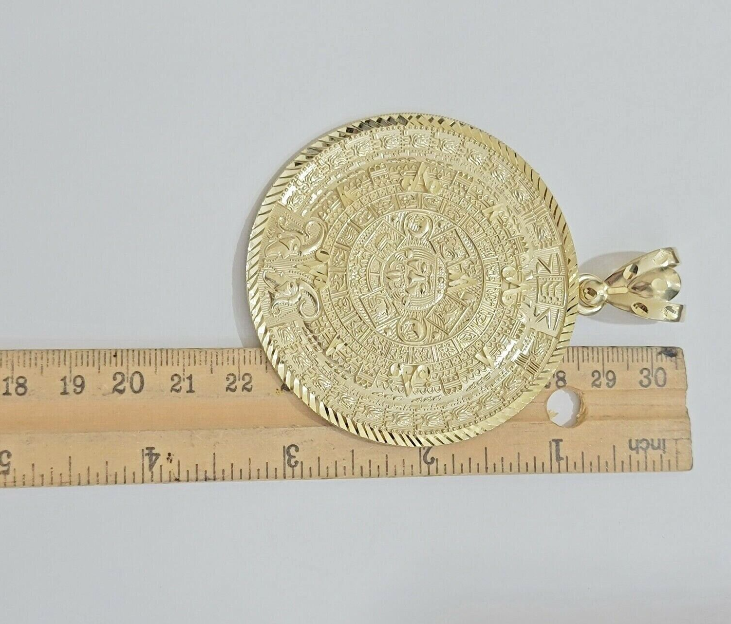 SOLID Real 14kt Yellow Gold Pendant Aztec Mayan Calendar 3.2" Men's Round Charm